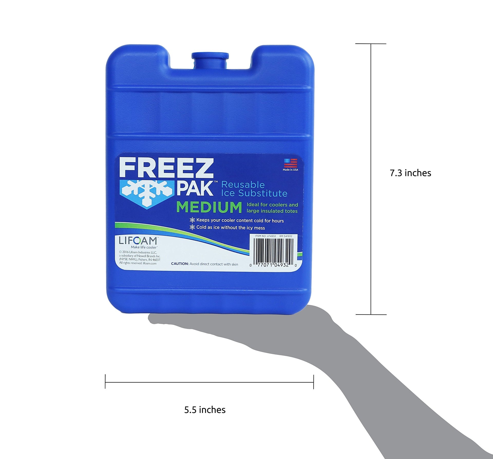 Keep your food and beverages cool with the No. 1 brand of ice packs in the USA. Freez Pak reusable ice packs come in a variety of sizes and are all 100% made in the USA. These are great for packed lunch or use in large insulated totes and coolers. Freez Pak ice packs contain a safe premium formula are BPA free and are made from 100% recyclable polypropylene.