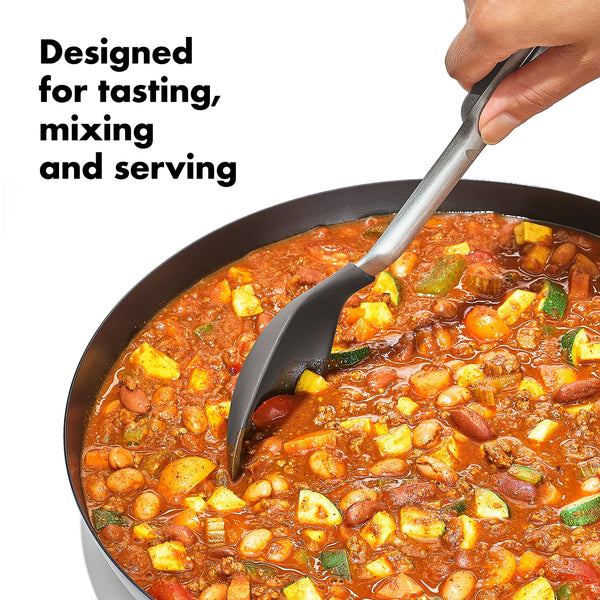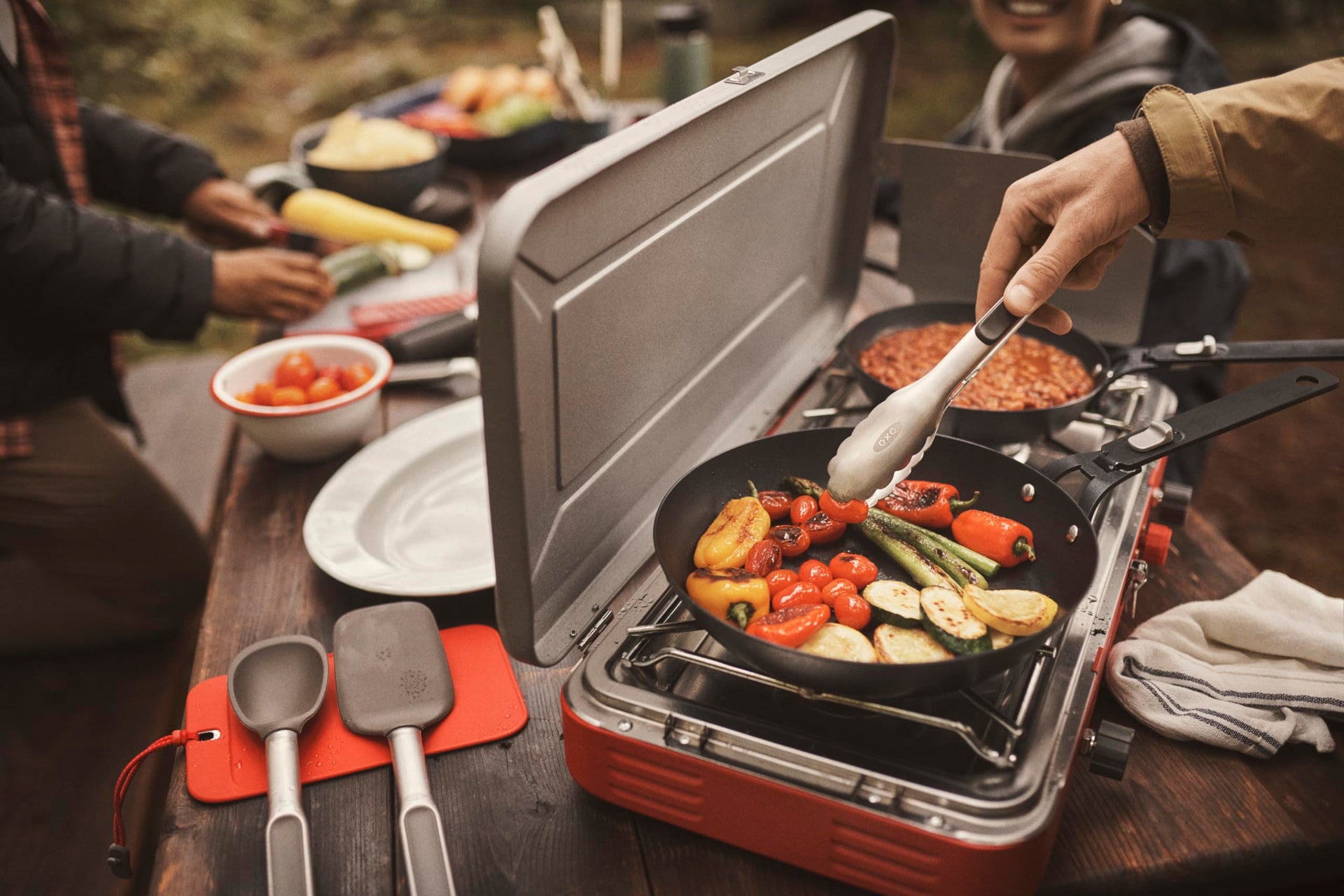 Tools built for campsite cooking - including a neat place to stash them. Includes Silicone Turner, Silicone Spoon, 10.5-in Stainless Steel Tongs and Silicone Tool Rest