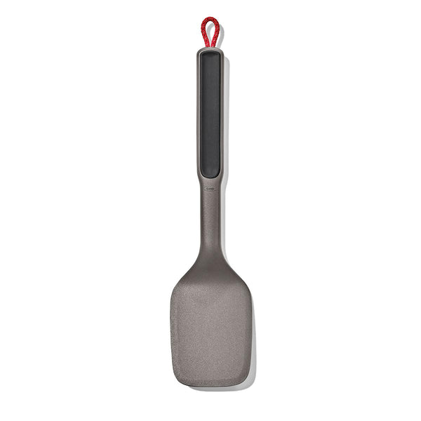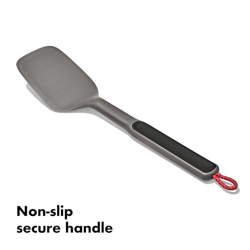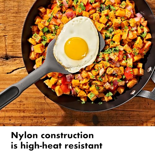 Whether youre working a cast iron skillet, a griddle or a stainless steel pan, youll flip for the OXO Outdoor Nylon Camp Stove Turner. The high-heat resistant, nylon head is safe to use on all types of cookware and will easily slide under eggs, pancakes and more. It has flexible, beveled edges that dig under food for effortless flipping and scraping. And it has a non-slip handle for a secure grip (even if your hands are wet) and a reflective hanging loop (to help you spot in the in the dark). The Turner is also designed to nest with other Nylon Camp Stove Utensils for compact storage. Dishwasher safe.