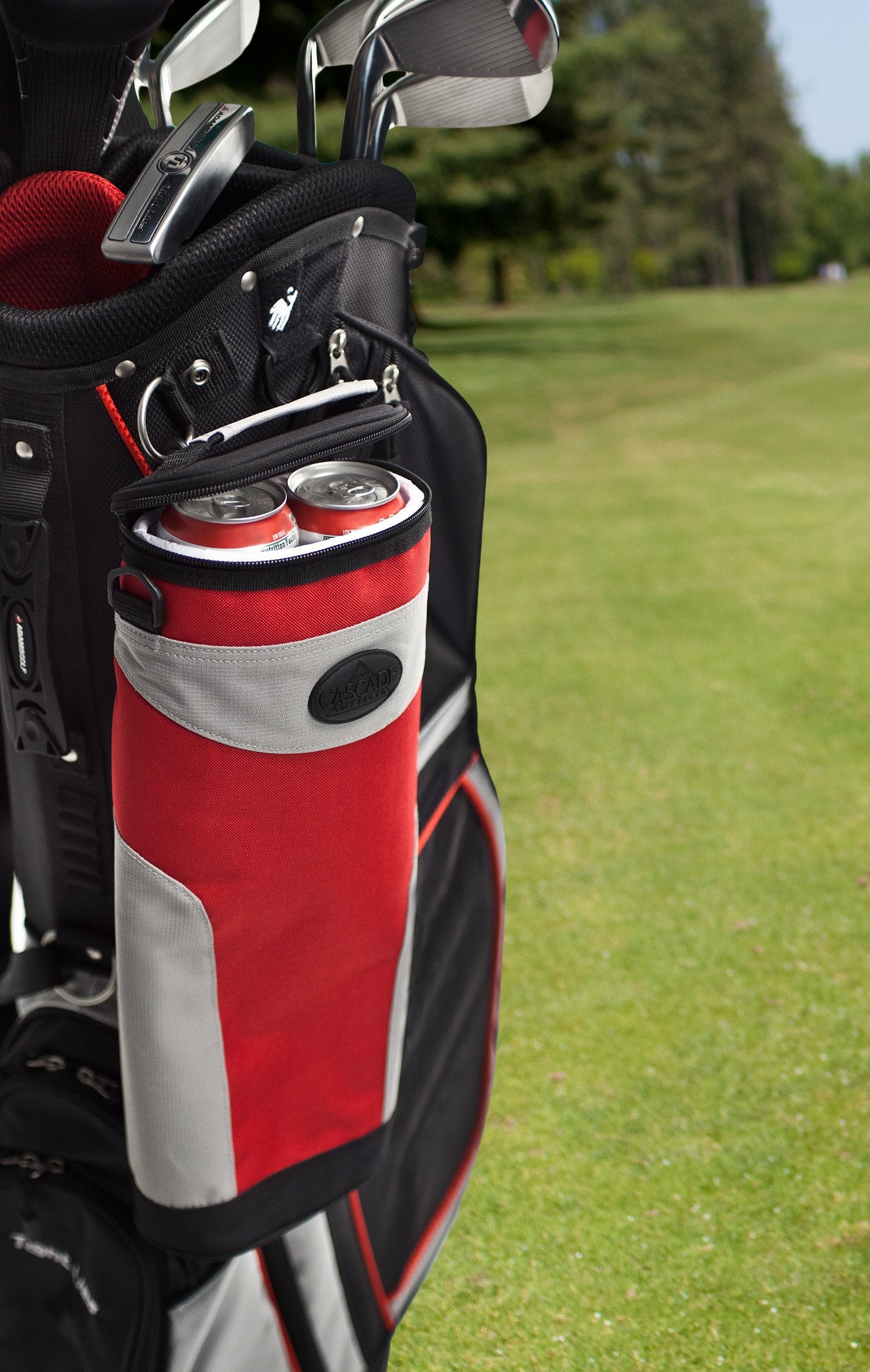 The 4-To-Go Beverage Cooler from ProActive Sports holds up to 4 cans or 2 bottles and keeps them cool for hours. Simply add ice to the cooler, drop in your beverages, and have ice cold drinks anywhere or anytime you want them. Featuring a shoulder strap and a clip, this cooler can be carried over the shoulder or clipped to your golf bag or backpack. Now you can have cold beverages when golfing, hiking, or youre a spectator at the game. Available in Black/Grey, Blue/Grey, or Red/Grey, the 4-To-Go Cooler by ProActive Sports is ready to go whenever and wherever you want to.