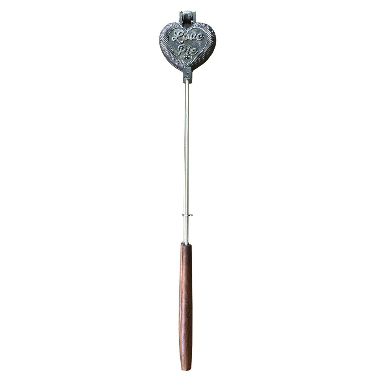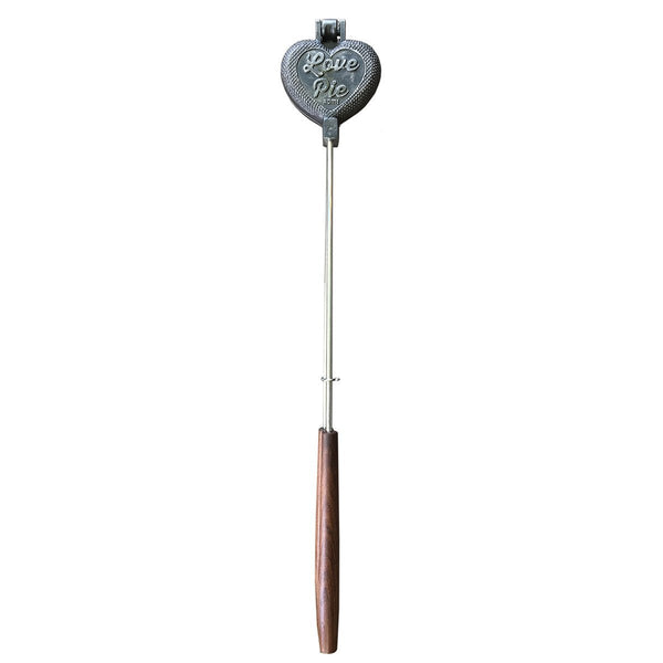 Show your affection with rome's original love pie. This cast iron pie iron makes sweet and savory pies in the shape of a heart. Perfect for campfire, firepits & BBQ grills. 28'' Overall length. 4.25'' x 3.75'' cast iron cooking surface. Stainless steel rod and beautifully turned wood handles. Recipes and instructions included. 10 year warranty. An original design made by Rome, a specialist in around the fire fun since 1964.
