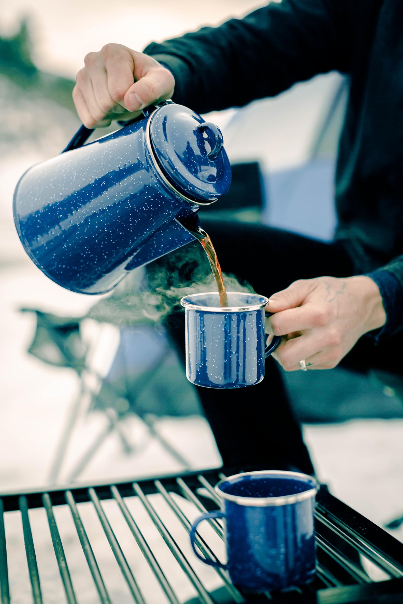 Stansport Enamel Percolator Coffee Pot & 4 Mug Set (11230),Blue