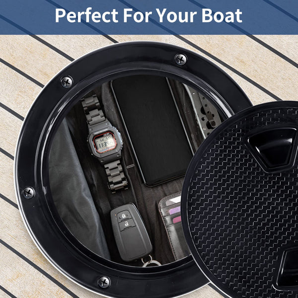 Smartmarine 6 Inch Boat Hatch Cover Black Round Non Slip Inspection Hatch W/Detachable Cover 4'' 6'' 8'' (6'')