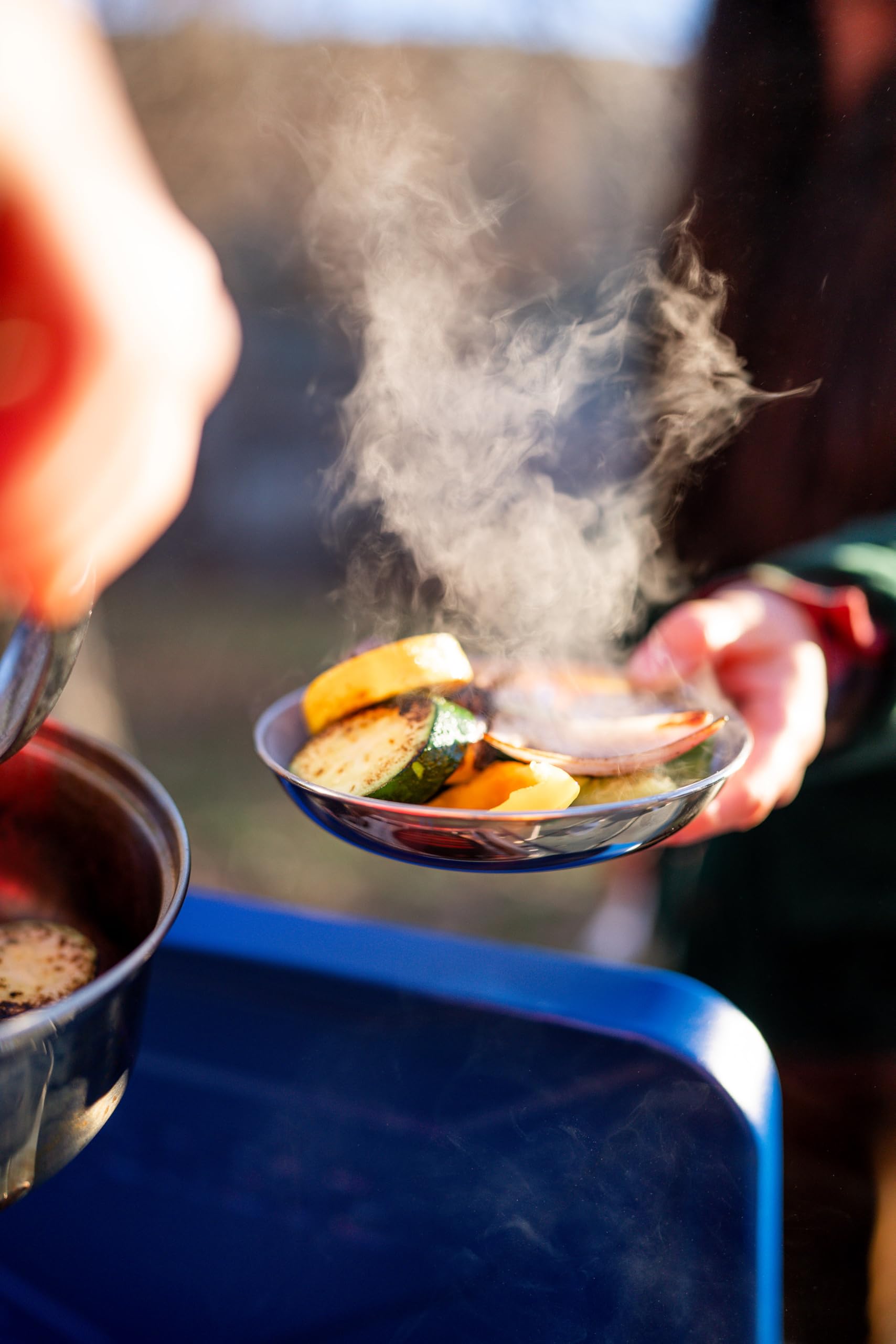 The only way to make an outdoor meal taste better is to share it with a friend! Our two person stainless steel cook set includes everything you need to enjoy a great meal (and great company) outside. The set includes a 1.5 liter pot, 7'' frying pan, two 6'' plates, two 8 oz plastic cups. Constructed from durable, easy-to-clean stainless steel, the entire set nests together for easy packing and organization, and features foldaway handles that stay cool during cooking.