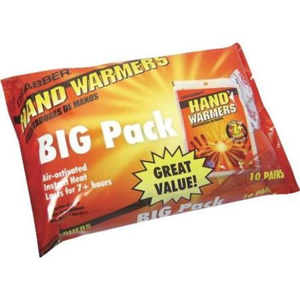 The grabber Hand Warmer Big Pack foil bag contains 10 grabber 7+ Hour Hand Warmers Perfect to pick up for the family ski trip, camping vacation, or for the construction site Stash the warmers in your car, sports bag, or emergency kit to have on hand whenever the chill sets in The combo box makes a great warm gift to share with friends and family grabber Warmers are air-activated, non-toxic, odorless, long lasting, and safe for the environment