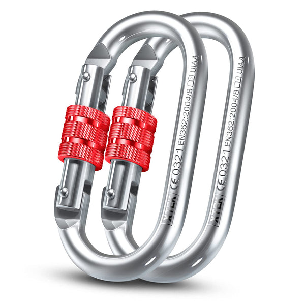 XTEK climbing carabiner - Safety, Security, Strength, Stability As outdoor enthusiasts we realize you want a smooth, fun, fulfilling adventure, free from surprises Rugged terrain approved, with built to last engineering that takes a beating Balanced, sway and skip-mitigating curves (O shape) Reinforced Steel construction Single handed locking mechanism 5260 LB, 25kN weight rating The Perfect O Shape Optimal balance and symmetry Smooth uniform curves limit load shifting Unique shape boasts higher gear holding capacity than traditional and D shape carabiners Twist It Smart Single Hand Lock Only one hand required Simply hook your object (or you), twist it closed, and itAs locked No hassle, worry, or taking your hands off your next move The Ideal companion For: climbing Anchoring camping Rigging