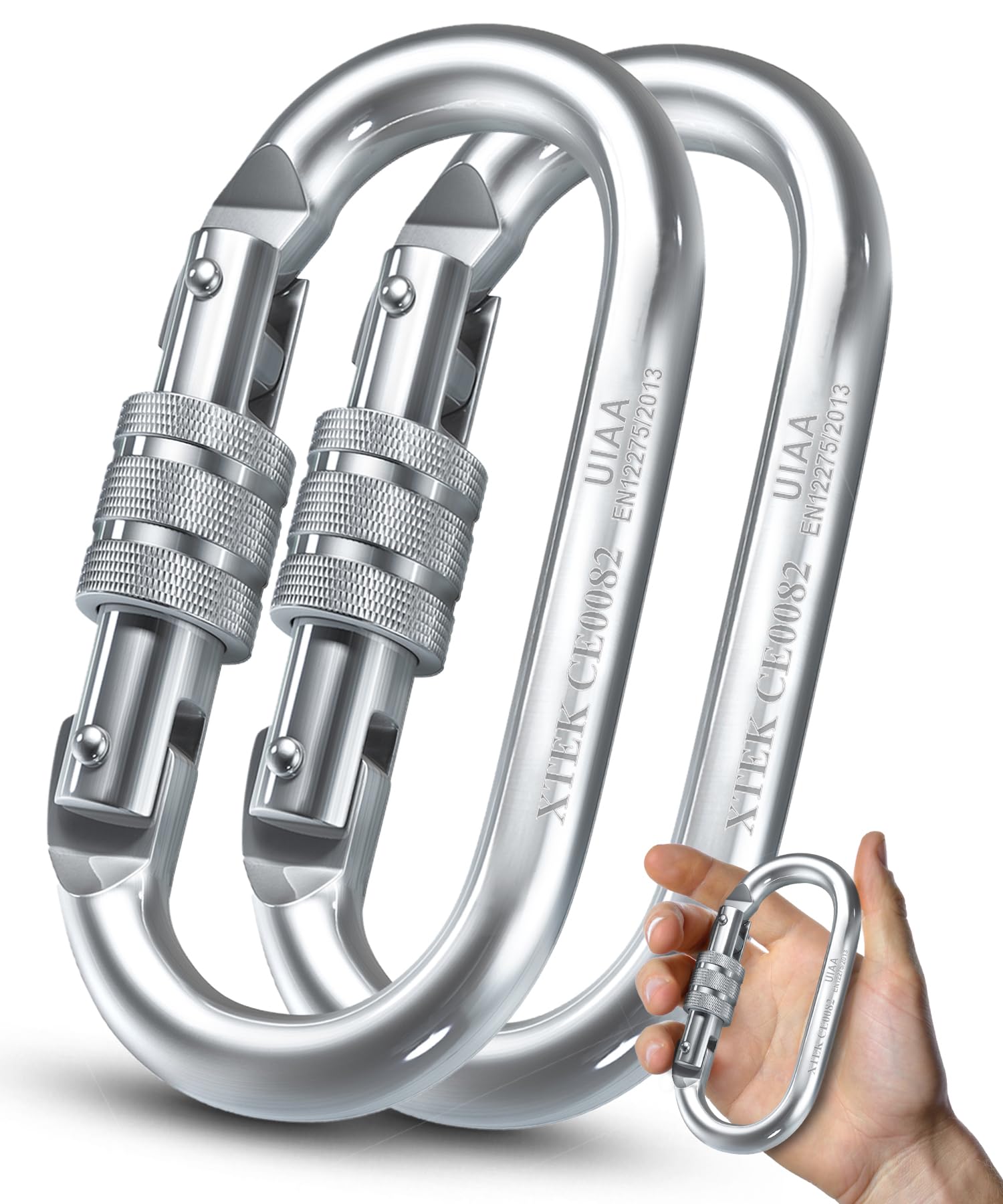 XTEK climbing carabiner - Safety, Security, Strength, Stability As outdoor enthusiasts we realize you want a smooth, fun, fulfilling adventure, free from surprises SMART climbers realize that begins and ends with one thing - your safety equipment XTEK UIAA & cE rated carabiner delivers superior safety and more RUggED terrain approved, with built to last engineering that takes a beating 5260 LB, 25kN weight rating from Reinforced Steel construction Smooth uniform curves limit load shifting BALANcED, sway and skip-mitigating curves (O shape) Unique shape boasts higher gear holding capacity than traditional and D shape carabiners The Perfect O Shape Optimal balance and symmetry TWIST It Smart: Single Hand Lock Only one hand required Simply hook your object (or you), twist it closed, and itAs locked No hassle, worry, or taking your hands off your next move The Ideal SAFETY companion For: TRX and weight bearing suspension exercises Aerial ballet, yoga or hoop moves Brake repels climbing Repelling Anchoring camping Belaying Rigging And of course, simple tasks like hanging your hammock, tent or rope swing without worrying about landing in the dirt Money Back gUARANTEE: Try it risk free and agree itAs the best carabiner youAve used or weAll do whatever it takes to make it right, so go ahead, click add to cart now and feel absolutely secure using it or your money back