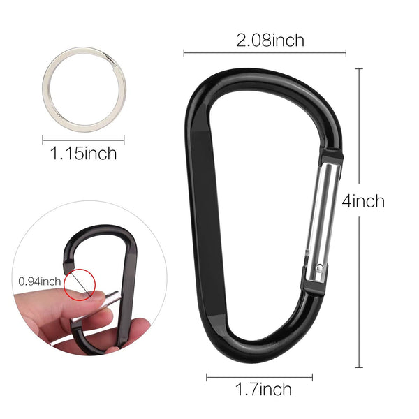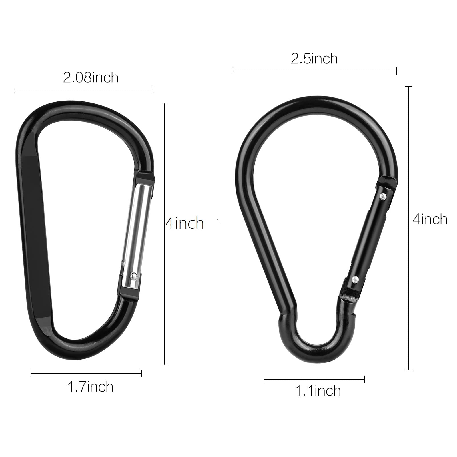 5 PCS 4 ''/10cm Large Carabiner Clips,Strong Unlocking Caribeaner Keychain Pack for Backpack Hanging Tent Hook, Light Duty Paracord Umbrella Rope Parachute Para Cord AccessoriesSpecificationColor: BlackNet Weight: 23 g / 0.8 oz Material: Aluminum Alloy Size : 4 x 2.5 inch (Approx) Tpye: nonlocking Wide Range Applications: Backpack, Handbag, Keychain, Water bottle?Tent, Rope
