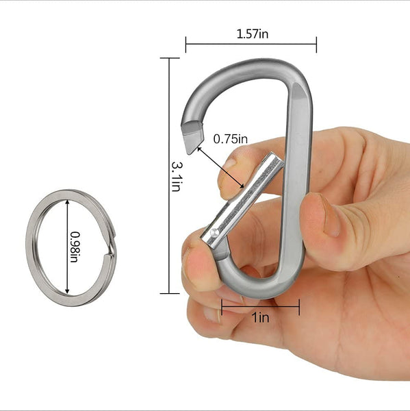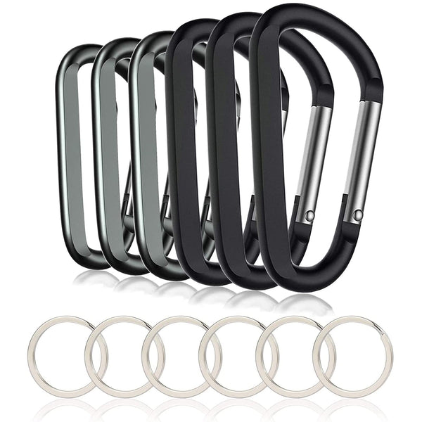 6PcS 3 Aluminum carabiner Keychain clip, Light Durable D Shape Nonlocking caribeaner Hook Buckle for Outdoor camping EDc Key chain RingFeatures Length: 379MM,nonlocking design, Maximum load: 50 lb compact, lightweight, durable,easy to use great for indoor outdoor applications,hanging lights,camping tent supplies,backpack attach keychain clips etcPackage includes: 6pcs carabiner clip,6pcs keyrings