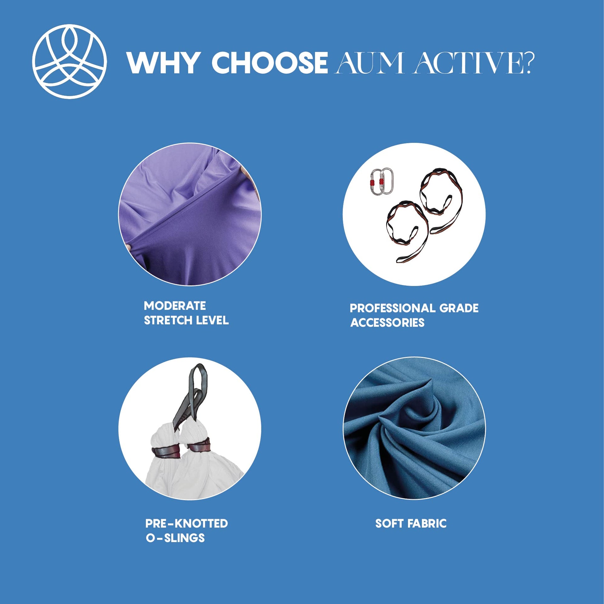 Aum Active Aerial Yoga Hammock - Durable Aerial Silk with Extension Straps, Carabiners, and Pose Guide - Aerial Silks for Home, Antigravity Yoga, Inversion Exercises, Yoga Starter Kit for All Levels