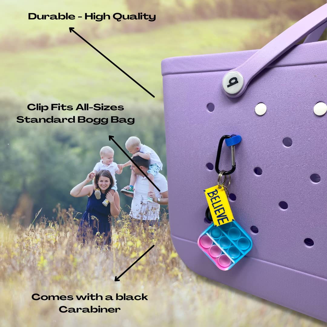 Always keep your keys or other valuables handy with the attachment accessory for Bogg Bags that comes with a carabiner clip to easily clip your keys or other items on This organizer fits securely into one of the bag holes just like a charm and securely holds your keys High quality plastic outer shell with attachments for all standard Bogg Bags Use on the inside or outside of the bag as you prefer carabiner clip included *Bogg Bag not included* Made in the USA