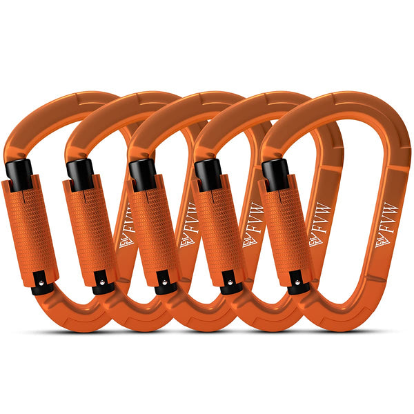 Fvw 5 Pieces Heavy Duty Climbing Carabiners, 25Kn Auto Locking Rock Climbing Carabiners Clips For Hammocks, Swing, Locking Dog L