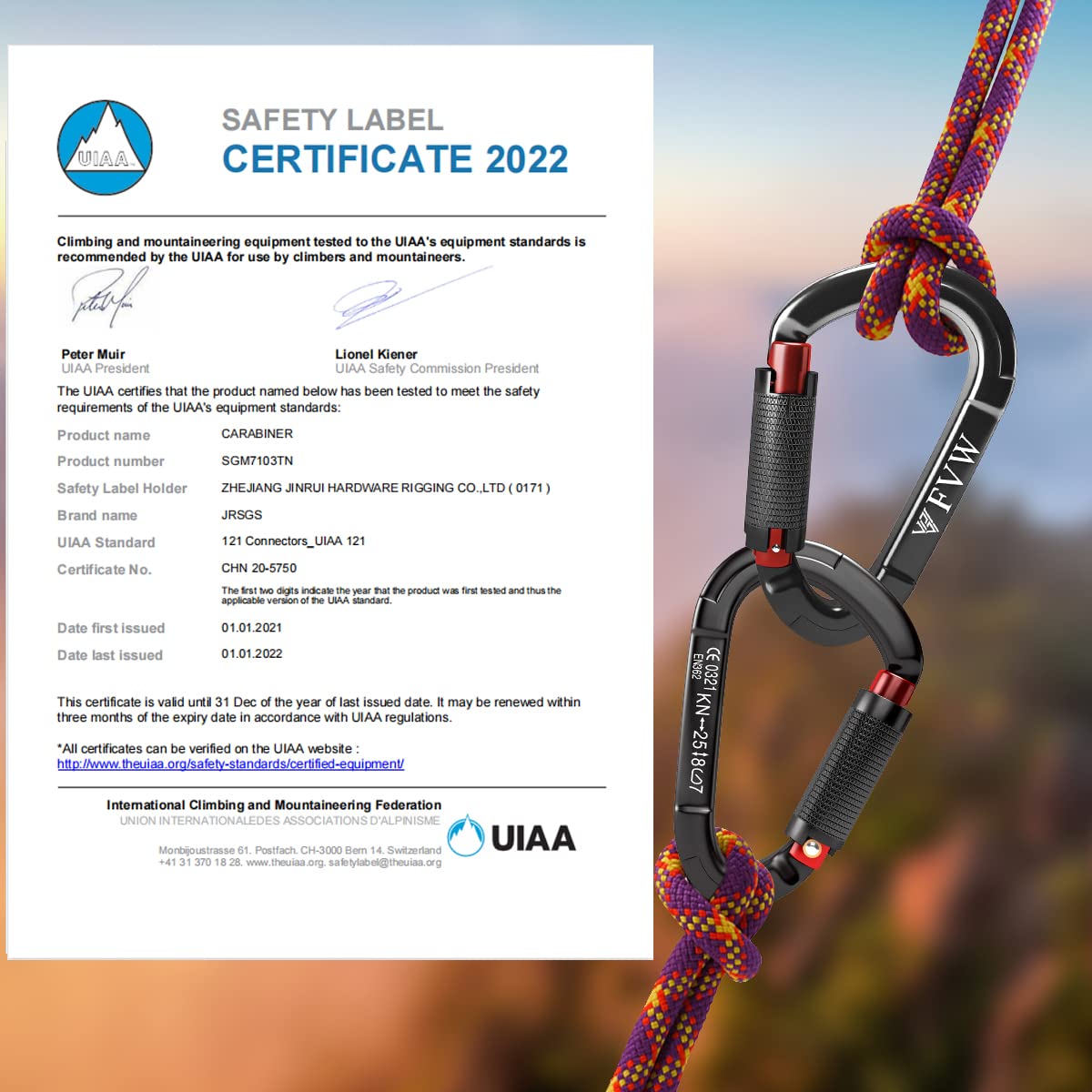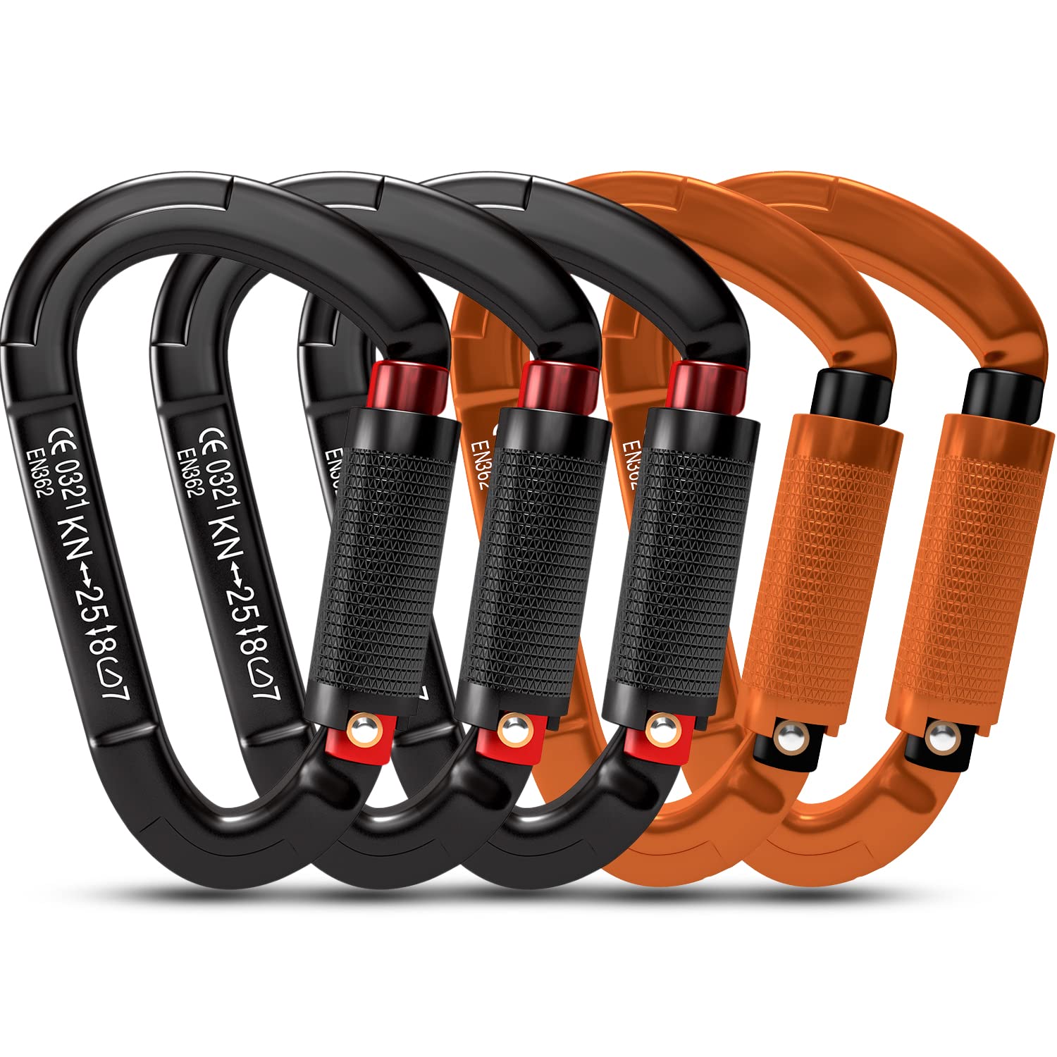 Fvw 5Pack Heavy Duty Climbing Carabiners, 25Kn Auto Locking Rock Climbing Carabiners Clips For Hammocks, Swing, Locking Dog Leas
