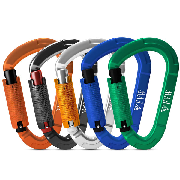 - Q: How do the locking mechanisms work on these carabiners? A: The carabiners feature a smooth screw-locking mechanism. You simply rotate the threaded nut by hand to unlock and lock the carabiner.