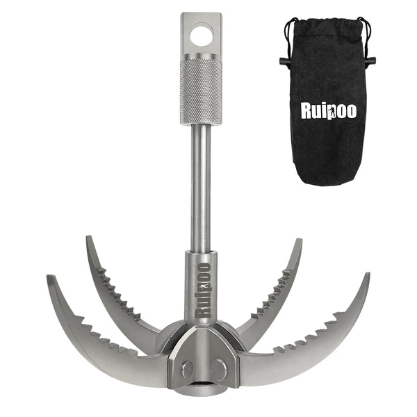 This product is designed by Ruipoo, please feel free to use it Features: This grappling hook is one of the essential equipment for outdoor lovers, comes with four 023inch spikes so youll be able to reach far away objects with ease The hook itself is 472inch, and is constructed of heavy duty stainless steel Durable and wear resistant, compact and easy to carry, also save your space The climbing hook also with a rough surface handle to increase its friction grappling hook widely used This high quality and durable climbing hook is great for outdoor climbing activities, tree climbing, rock climbing, ice climbing, mountain climbing It also suitable for outdoor wilderness survival activities, outdoor adventures, rescue vehicle traction, grapple falling objects and used for disaster relief But if you use this climbing claws together with the rope, please make sure that the rope must be tight and strong enough Specifications: Length: 984inch Weight: 186Ibs Handle diameter: 098inch(approx) Handle aperture: 059inch(approx) claw bearing weight: 1102Ibs Shaft bearing weight: 3306Ibs Material: SUS304 Stainless Steel and ASTM 1050A Package include: 1 grappling hook Note: This climbing claw does not include the rope ay have deviation due to the manual measurement