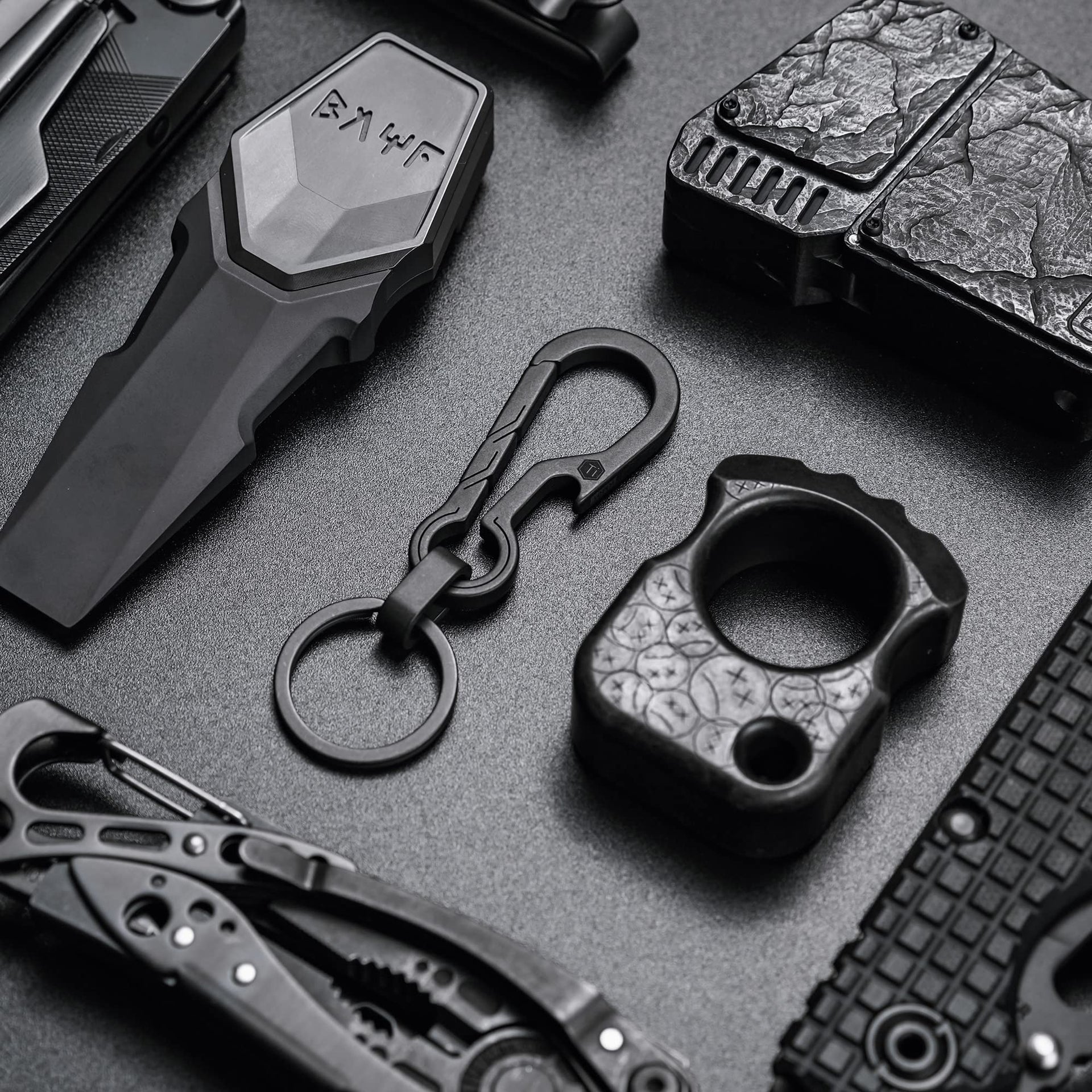 KeyUnity KM01 Titanium Key clip, Key Ring clip for Keychain, Titanium carabiner Keychain for Man This Key Pocket clip main function is a carabiner for keys, can also be used as a bottle opener keychain SPEcIFIcATION: Material: Ti-6Al-4V Titanium craftmanship: Sand blasted stone washed Total length: 322 (82mm) Total weight: 11g Key clip length:2 (52mm) Key clip width:088 (225mm) Key clip thickness:015 (4mm) Key clip weight: 6gA1g Key ring diameter: 098 (25mm) Key ring thickness: 011 (3mm) key ring weight: 5g SPEcIAL FEATURE: 1Well made cNc machined from full Ti-6Al-4V titanium alloy with thickness of 4mm, outer surface treated with sandblasting stone washing process, make this caribeener heavy duty, light and strong 2Ingenious design Take the advantage of the toughness of Ti and the spring is one-piece molding by wire cutting technology, make this caribiner more durable 3Functional design In addition to the traditional keychain and quick release carabiner function, KeyUnity KM01 also served as a bottle opener