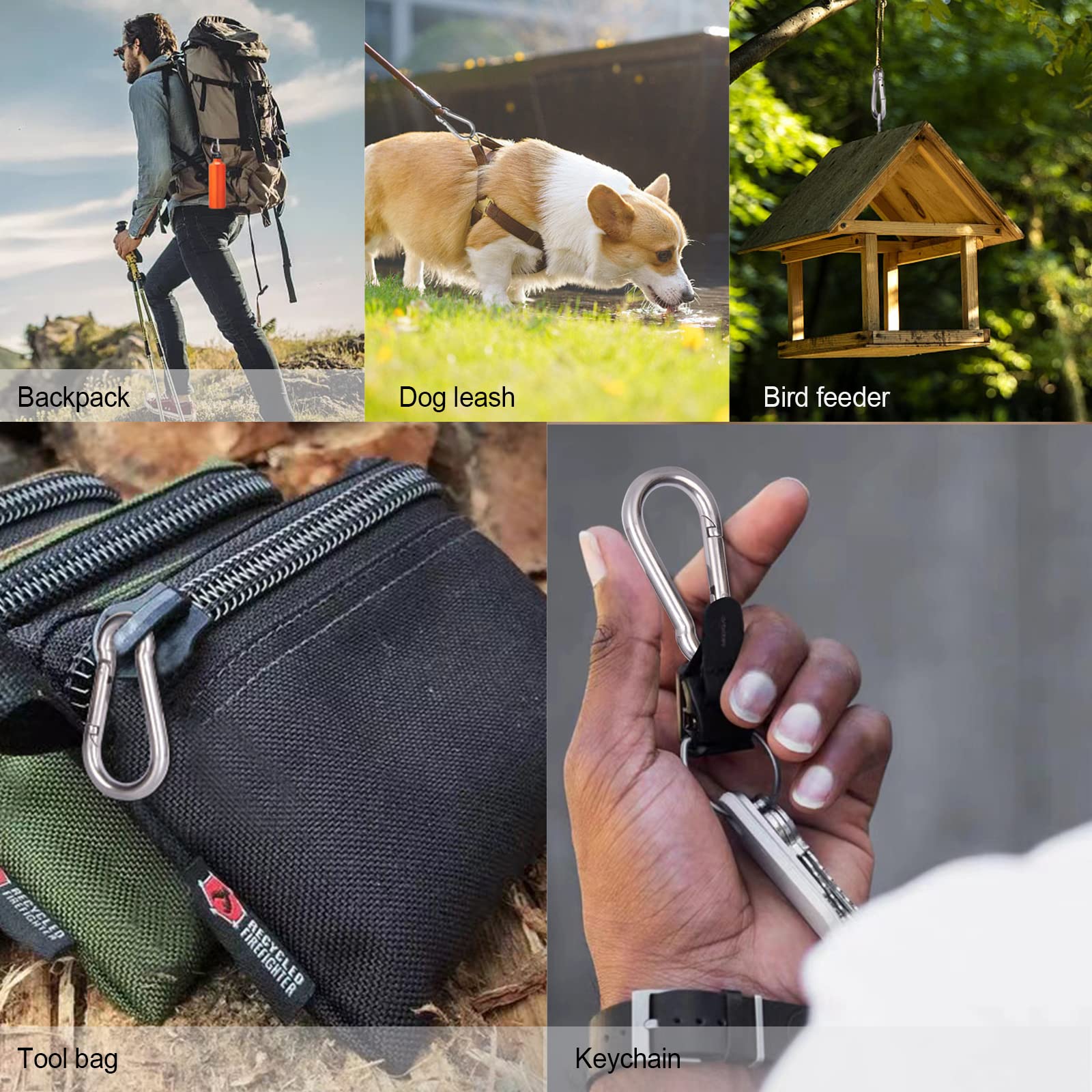 Safe and high quality material:The carabiner is made of high-quality stainless steel 304, which is strong, waterproof, rust-proof, wear-resistant, corrosion-resistant and high-strength, making the heavy duty carabiner durable and allowing you to use it with peace of mind for a long time