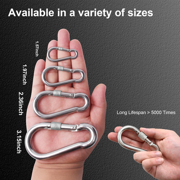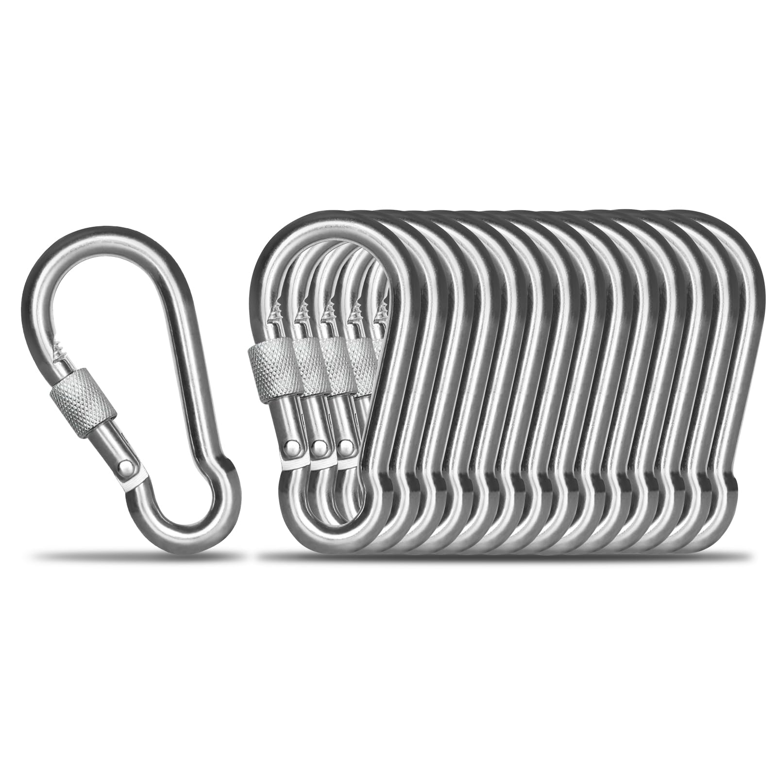 Kinlink 15 Pack Screw Locking Carabiner, 1.97 Inch Heavy Duty Carabiner Clips, 304 Stainless Steel Small Caribeener Clips, Carib