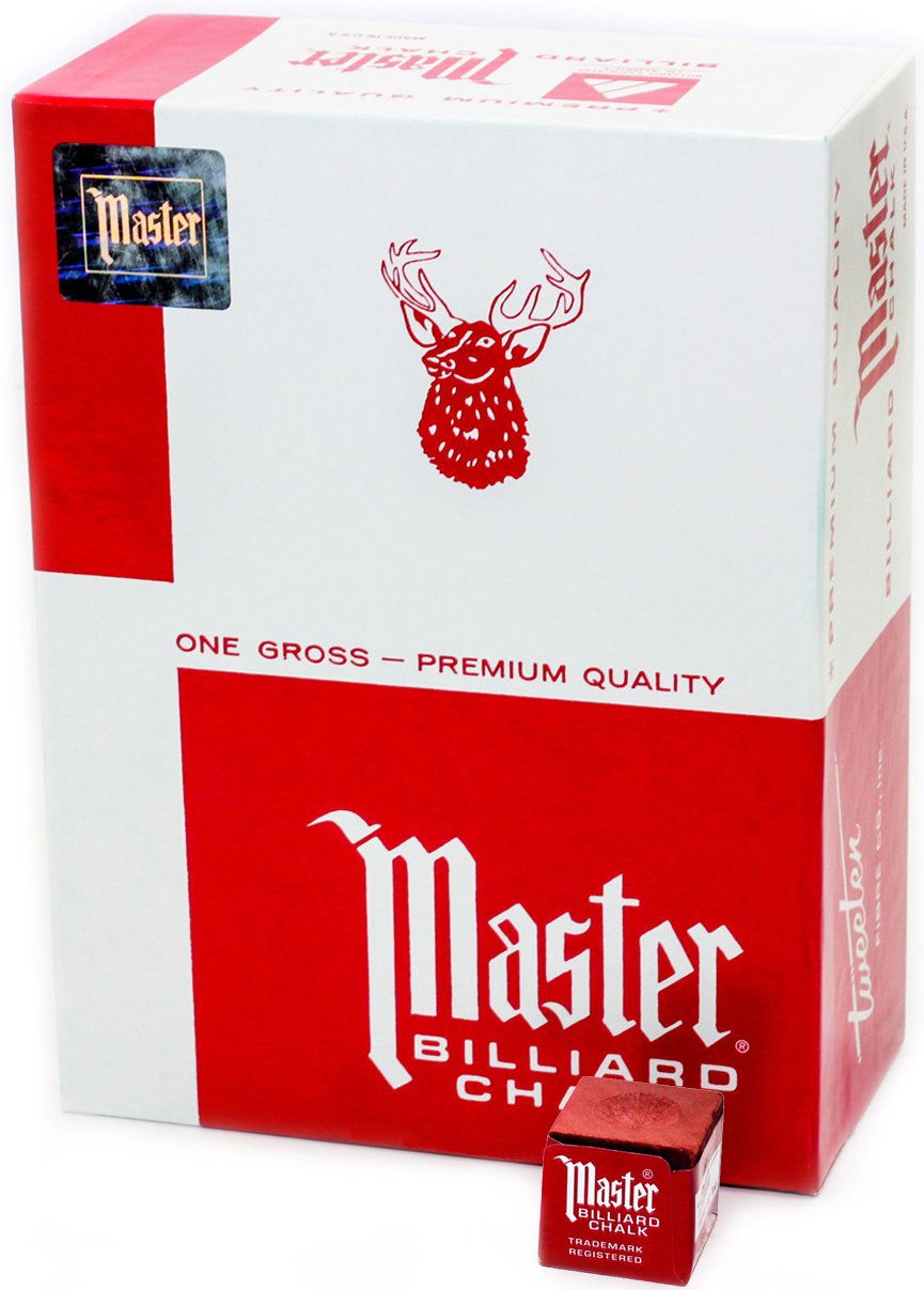 Master Billiard cue chalk is an essential component to have on hand, whether you play recreationally or participate in professional tournaments This professional grade billiard chalk delivers a smooth and even coating that will not cake or flake Apply the chalk to the tip of the cue stick, ideally before every shot, to increase the friction between the cue tip and the struck ball minimizing a miscue on a non-center hit Available in a variety of colors, allowing you to match the chalk to the felt of your billiard table which diminishes chalk marks Includes 144 chalk cubes packaged in protective box for convenient storage Proudly made in the USA
