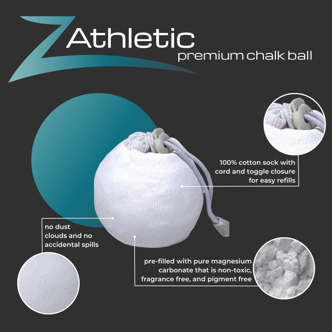 Enjoy a reliable and dry grip with a Z Athletic gymnastics chalk Ball Whether youre a gymnast, ninja, rock climber, or weightlifter, our exceptional chalk ball allows you to enjoy a secure and confident hold Our white chalk is formulated with pure magnesium carbonate, allowing you to maintain a strong hold without the distraction of fragrance or pigments Inside a 100% cotton refillable sock, our chalk ball contains no fillers, dyes, or added fragrance, ensuring a clean and effective chalk experience When you run out or run low, simply refill with loose chalk Our chalk for weightlifting, climbing, and gymnastics is designed to be less messy and longer-lasting Simply squeeze the chalk ball to coat your hands evenly for a continuous and reliable grip throughout your workout or routine We understand that every athlete is unique, which is why we offer a range of sizes to cater to your needs choose our 2oz chalk ball or opt for our 3oz chalk ball, perfect for frequent users Our gym chalk is not just for adults - its also ideal for the little champions With our chalk for kids, young gymnasts can enjoy the same benefits of enhanced grip and control during their practice sessions Our hand chalk is not limited to one discipline Whether youre engaging in gymnastics, ninja training, rock climbing, or weightlifting, our versatile chalk provides the perfect grip you need to excel in your chosen sport Invest in top-quality gym chalk blocks that deliver exceptional results Dont settle for subpar chalk powder when you can have the best workout chalk at your fingertips
