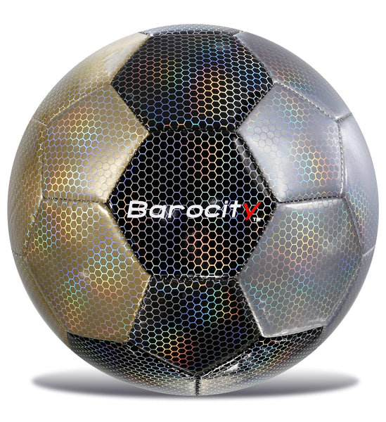 - Q: What is the size of the Barocity Mix Silver, Black, & Gold Soccer Ball? A: The Barocity Mix Silver, Black, & Gold Soccer Ball is a size 5, which is the official size for ages 12 and up.