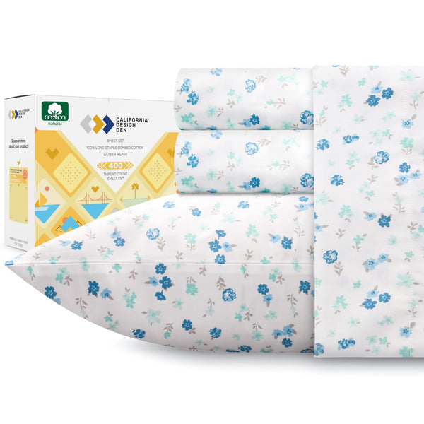 Discover the Perfect Blend of Style and comfort with Printed Sheet Sets If youre looking for a way to add a pop of personality to your bedding, our 100 cotton sateen 400 thread count printed sheet sets are the perfect solution Not only are these sheets incredibly comfortable, but the clear and well-defined print gives you the chance to express your personal style in a subtle yet impactful way At california Design Den, we believe that bedding should be both stylish and practical, which is why weve taken great care to ensure that our printed sheets meet the highest standards of quality and durability The fabric is naturally luxurious and soft, providing you with a comfortable nights sleep, while the colors are vibrant and long-lasting, so you dont have to worry about fading or bleeding with washing Our printed sheet sets are not only crafted from the finest sateen cotton, but the print quality is second to none The tight weave of the fabric makes it the ideal canvas for a beautiful and tasteful print, while the colors are perfectly balanced, so you dont have to worry about any misprints or loud patterns These 4 piece sheet sets are expertly crafted, with quality stitching and 16 inch deep pockets to fit mattresses from 8 to 16 inches deep The elastic is strong and secure, so you never have to worry about your sheets popping off in the middle of the night, and the quality ensures that the elastic remains strong and secure even after years of use Personalize Your Bedroom - Elevate your bedding game with our printed sheets, featuring a variety of fun florals and stripes Showcase your personality and add a pop of color to your bedroom No more boring solid sheets, its time to express yourself
