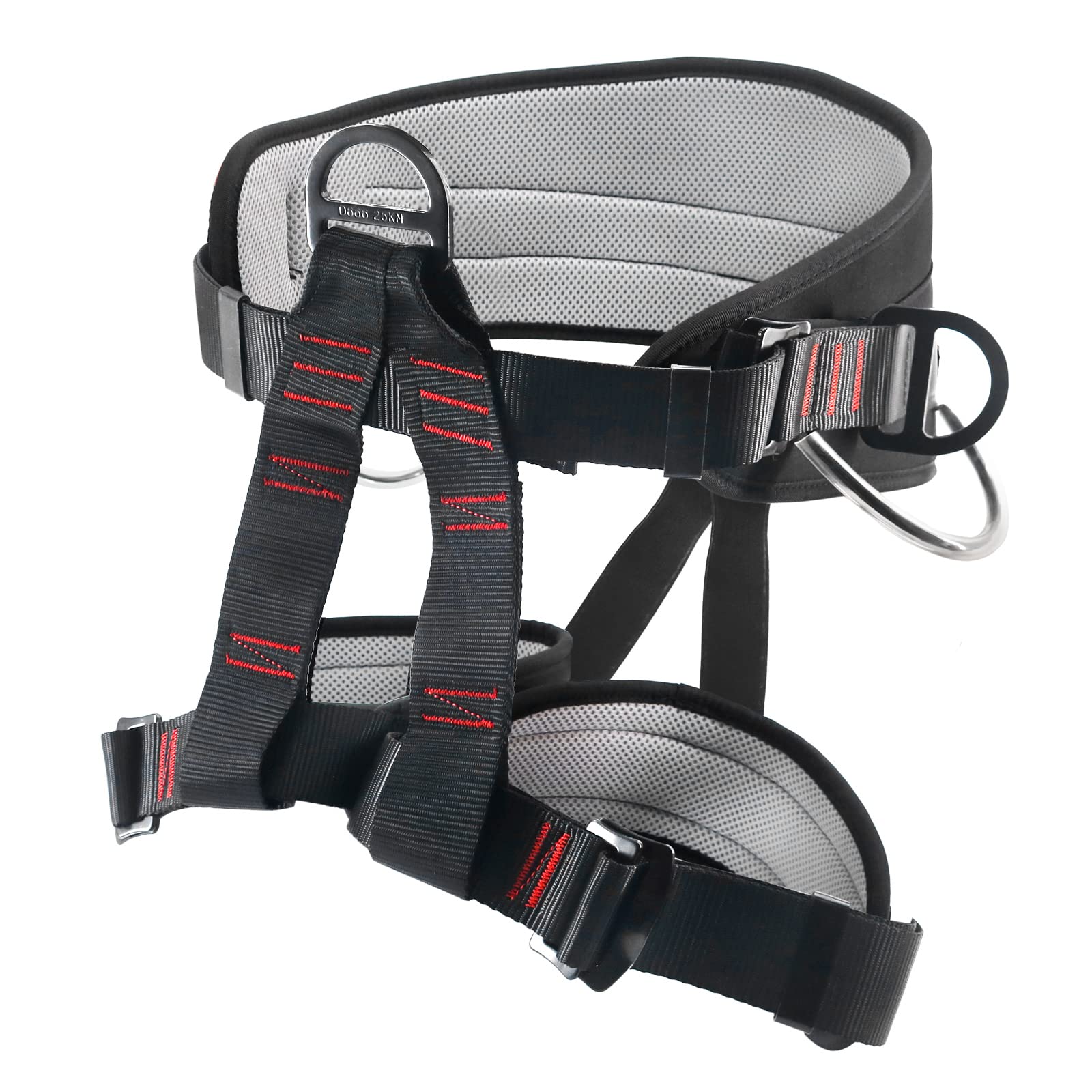 - Q: How do I adjust the harness for a secure fit? A: The harness includes two metal adjustable buckles for the waist and leg loops, allowing for easy adjustments to ensure a secure and comfortable fit.