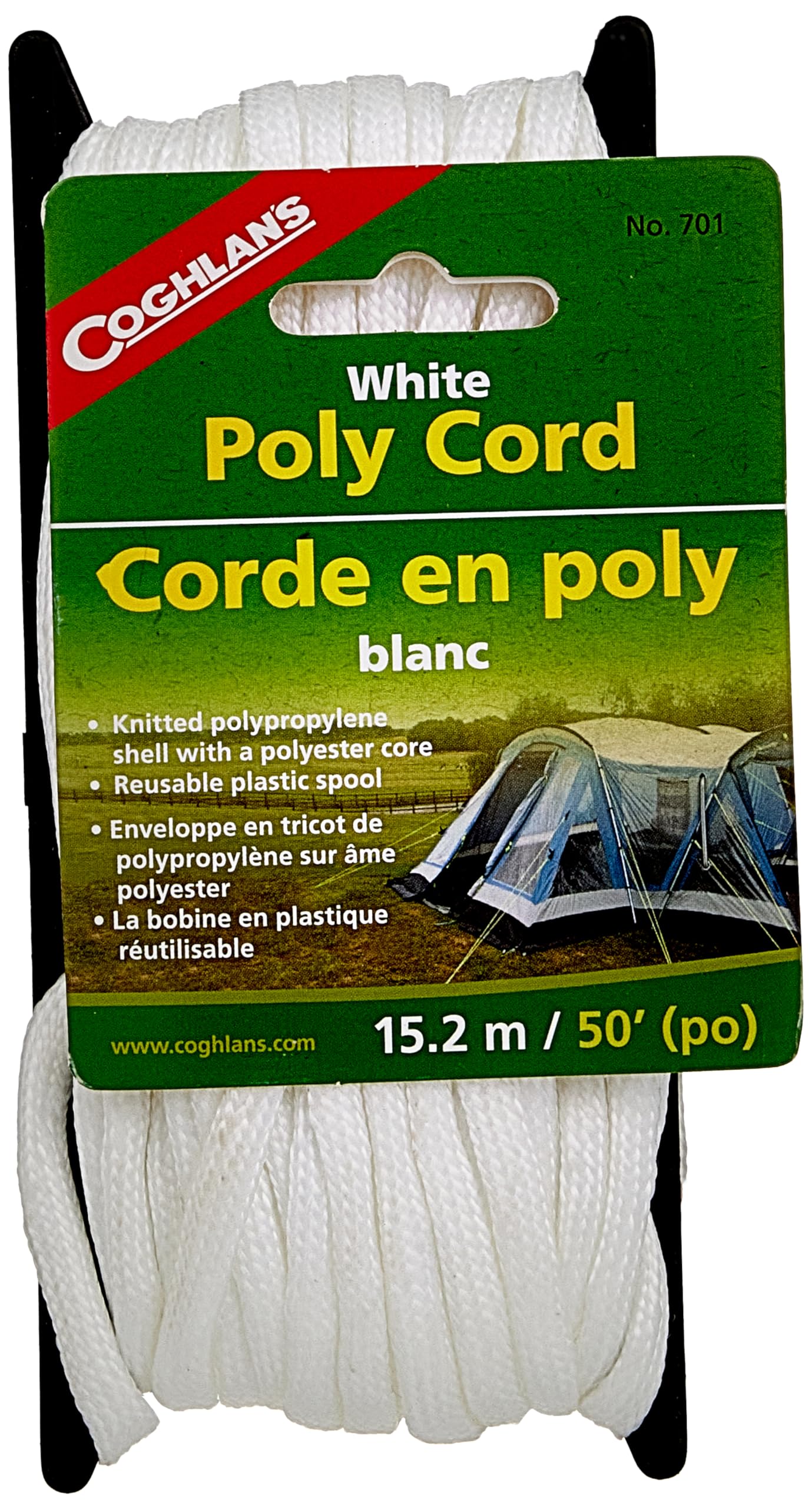 An essential piece of gear for camping, backpacking, and all your outdoor adventures, the Coghlan's Poly Cord is made from durable 1/4-inch braided nylon. Use it for tying down tents, setting up shelters, and more. This 50-foot cord comes with a reusable spool for easy storage. Coghlan's makes the outdoors more comfortable and enjoyable with over 450 accessories for camping, hiking, fishing, and RVing -- from cooking gear to first aid kits, insect netting, firestarters, tent repair, and more.