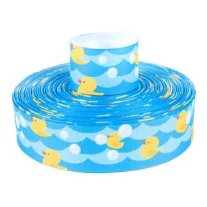 Go quackers with this adorable duck patterned 1 1/2 Inch Just Ducky Grosgrain Ribbon. Cute yellow ducks paddle around waves of bath water, playing with soapy bubbles and enjoying life. Its hard not to smile when everything is Just Ducky! This grosgrain ribbon is a lightweight and versatile fabric made from strong polyester material. Characterized by its ribbed appearance, it is a plain-weave corded fabric with low luster appearance. It is a firm, close-woven, fine-corded fabric that is very durable. Used in a multitude of applications, this ribbon can be used for bows, as part of a dog collar, lanyards, a trim on clothing, linens, purses, tote bags, hats, and as a tensioning material for drums. Please note, the print design is only on one side of the ribbon. Our grosgrain ribbon is 100% polyester and proudly made in the USA! We do our best to show the true colors of our products in our pictures. However, monitor colors can vary so the color shades may vary a little on different monitors. Country Brook Design cannot be held responsible for misuse of our product. It is the responsibility of the purchaser to determine the suitability of the product for their use.