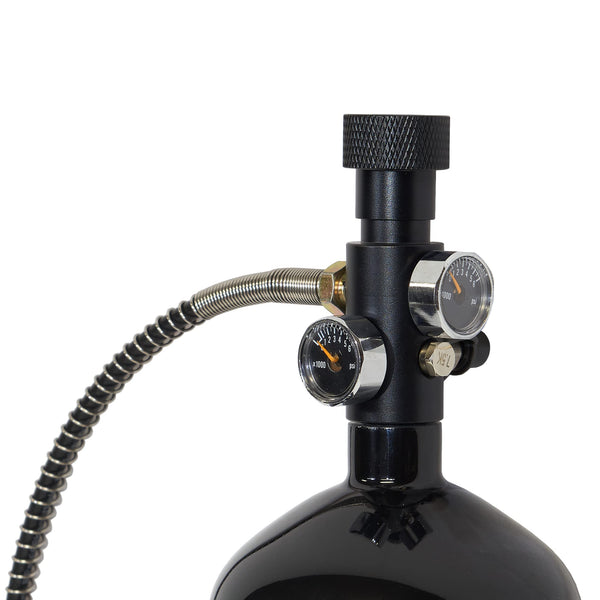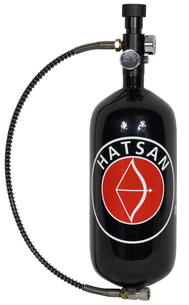 HatsanUSA's TactAir 1.6L (98 CI) carbon fiber composite tank can be filled upto 4500 PSI. It has an 11% increased capacity over similar 88CI units. It includes a fill valve with dual pressure gauges to measure tank pressure and fill pressure. It also has a long 15-year service life.