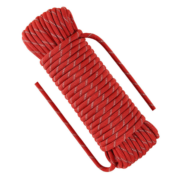 This rope is made of Nylon(innner) and Polyester(outer). It has high strength, abrasion and heat resistant, lightweight, good elasticity and flexibility,waterproof and quick-drying, UV resistance, pure and bright colours, no colour loss. Ultimate tensile force: 20KN(4,409lbs, 2,000KG); Working tensile force: 15KN(3,372lbs, 1,500KG); Diameter: 3/8 inch (10mm); Cable Length: 16.4 feet (5 Meters); Color: Reflective Red. Package come with: 1 x rope, 1 x drawstring rope bag. Worked for outdoor rock climbing(Static rope only), explore a cave, Rappelling, Rescue, hiking, mountaineering, camping, tents, securing equipment, emergency rescue, working at heights and down hole and others. With sunlight resistant, worked as watersprots rope, marine rope, mooring rope, boat rope, dock line, anchor rope, kayak canoe tow lines, sailboat rope and others. Worked as arborist rope, bull rope, swing rope, tree felling rope, pulling rope, pulley rope, hoist rigging line and others