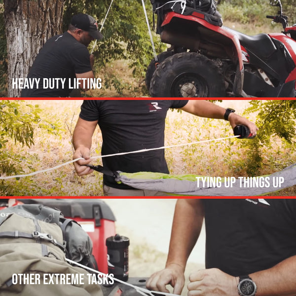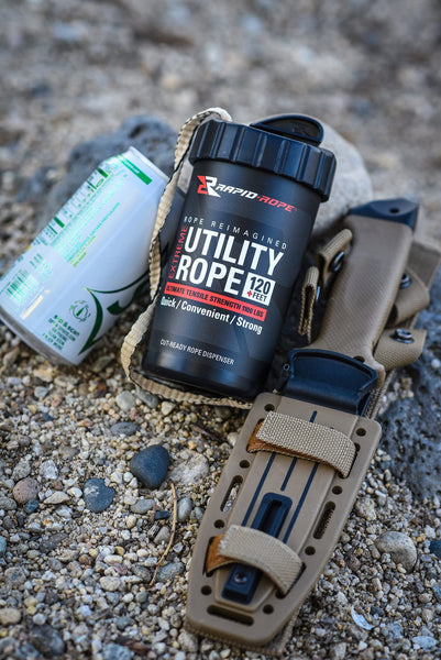 Welcome to Rapid Rope! If you're sick and tired of needing some cord at home or on an adventure only to find it all tangled up, you're going to love our rope in a can! Rapid Rope gives you 120 feet of test cord in an easy to deploy canister at your fingertips. The canister is just a little larger than a 12oz soda can and features an integrated cutter. This means the canister easily fits in your hand, pack, even your drink holder. What we like best the cord deploys from the canister in any direction (even upside down) and if you drop the canister, it doesn't unspool leaving you tangled in a mess. you can actually deploy cord and cut it using just one hand.