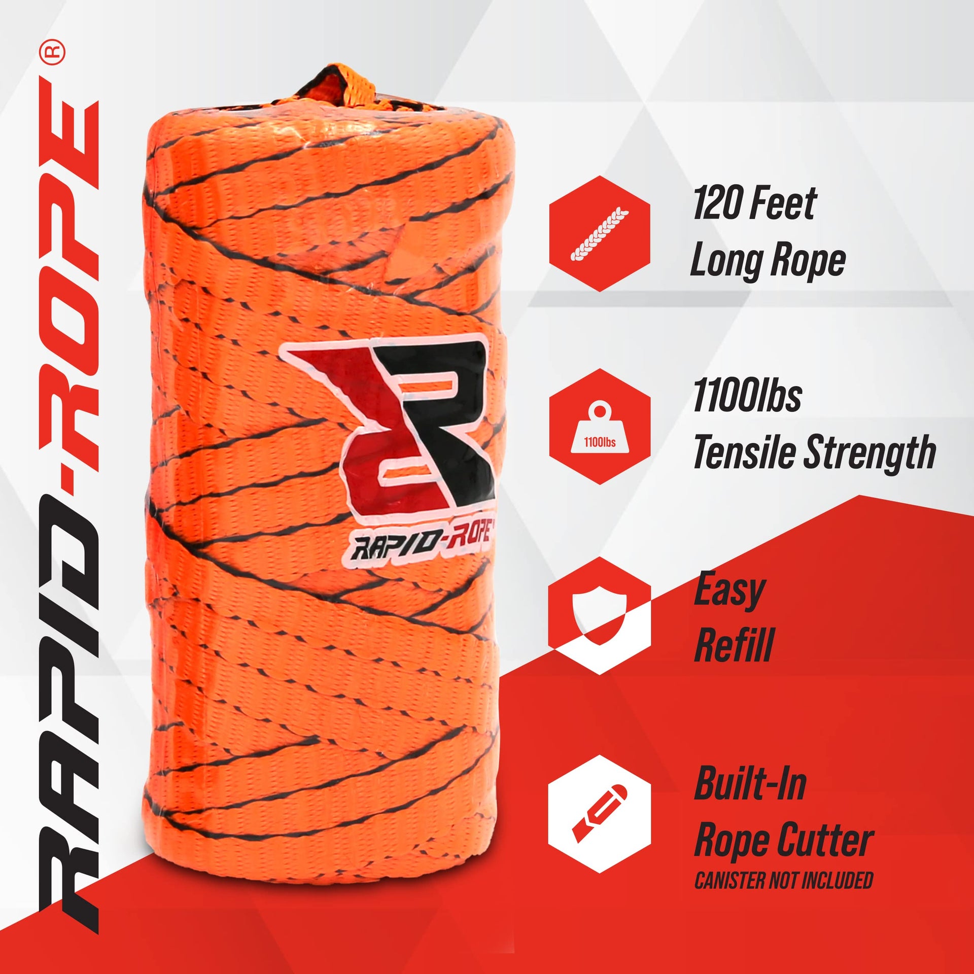 Rapid Rope Refill 120Ft Orange Flat Tactical Paracord | Made In The Usa | 1100Lb Tested Heavy Duty Poly Rope Test Cord | For Hik