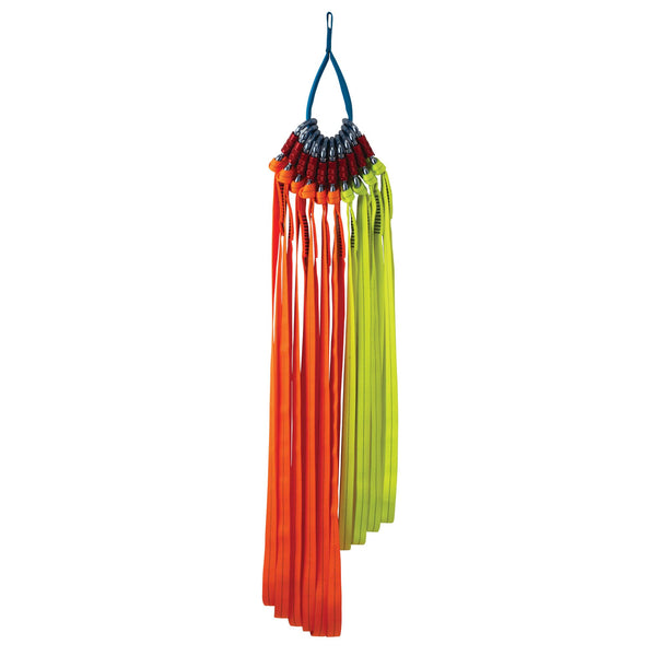 Convenient kit includes six 36 Blaze Orange Loop Runners, four 30 Orbit Yellow Loop Runners, ten Climbing Technology Key TG Carabiners and two durable nylon bales for storage
