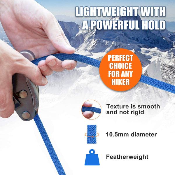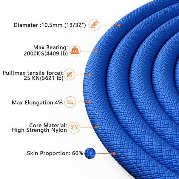 X Xben Rock Climbing Rope, Static Uiaa Mountain Climb Ropes, 10.5Mm 32Ft Blue Mountaineering Climbing Gear For Rescue, Hiking, O