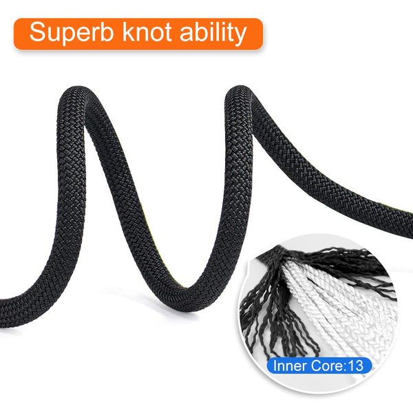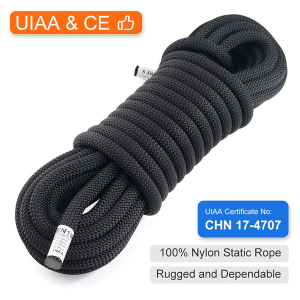 X Xben Rock Climbing Rope, Static Uiaa Mountain Climb Ropes, 10.5Mm 64Ft Black Mountaineering Climbing Gear For Rescue, Hiking,