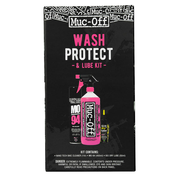 Looking for the perfect gift for the bike fanatic in your life? Or just a great value treat for yourself? Then look no further. Here at Muc-Off, we know that a clean bike is a fast bike. By cleaning your bike regularly, youll keep muck and grime at bay which will make your bike more efficient and reduce the likelihood of mechanical problems. To help you out, weve developed a range of gnarly bike cleaning kits that make bike maintenance a breeze. The Muc-Off Wash, Protect and Lube Kit covers all the bases when it comes to cleaning and protecting your bike. This kit isnt style specific - so its jam-packed with all the essentials for any rider, from MTB shredders to daily commuters. The kit contains a bottle of our infamous pink Nano Tech Bike Cleaner for an unrivalled all-over clean and a can of MO-94 for the ultimate in multi-purpose bike sprays! As if that wasnt enough, this kit also contains a bottle of our Dry Chain Lube so that you can prime your links for peak performance!