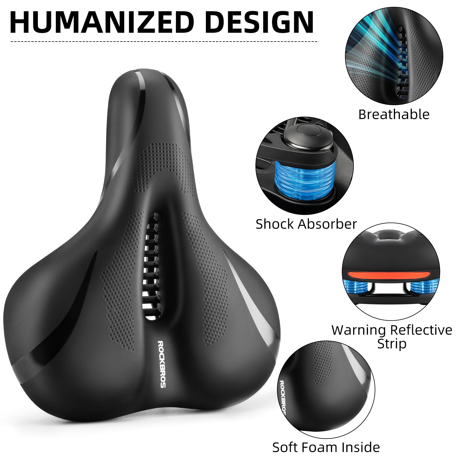 Rockbros Comfort Bike Seat - Universally Comfy Foam Bicycle Seat Fits Stationary, Mountain, And Cruiser Bike Saddles - Easy Asse