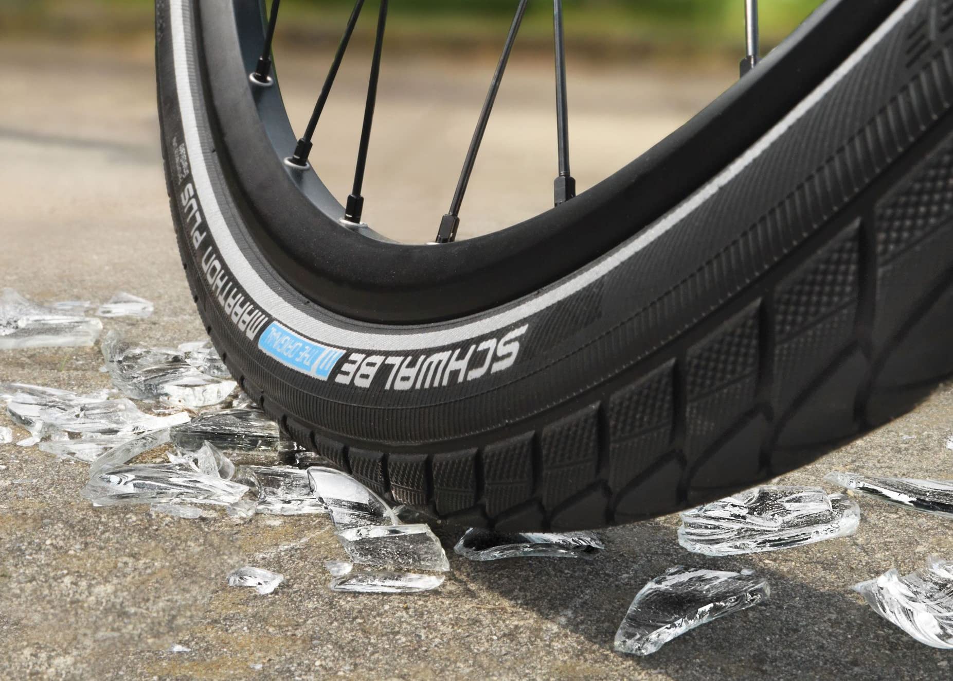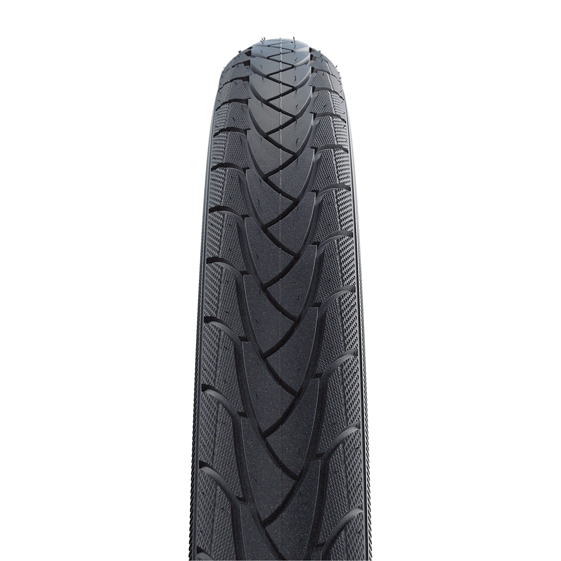 The Schwalbe Marathon Tires incorporate light-reflecting sidewalls for better visibility and also utilizes a Silica compound for easy rolling and longer life. Features-Marathon Silica compound for easy rolling and longer life-Reflex sidewalls incorporate light-reflecting bands-SmartGuard puncture protection to resist thorns, shards and even thumbtacks-Tire meets ECR R75 certification for e-bike use up to 50km/h Item Specifications-Color:Black-Weight:870-Tire Bead:Steel-ISO Diameter:559 / 26'' mtn-ISO Width:47-Labeled Size:26 x 1.75-Tire Type:Clincher-Tire Diameter:26''-Intended Use:Touring-Hybrid-Defined Color:Black-Flat Protection:Tread and Sidewall-PSI:95-Weight (oz):31-TPI:67-Designed for ebike:Yes