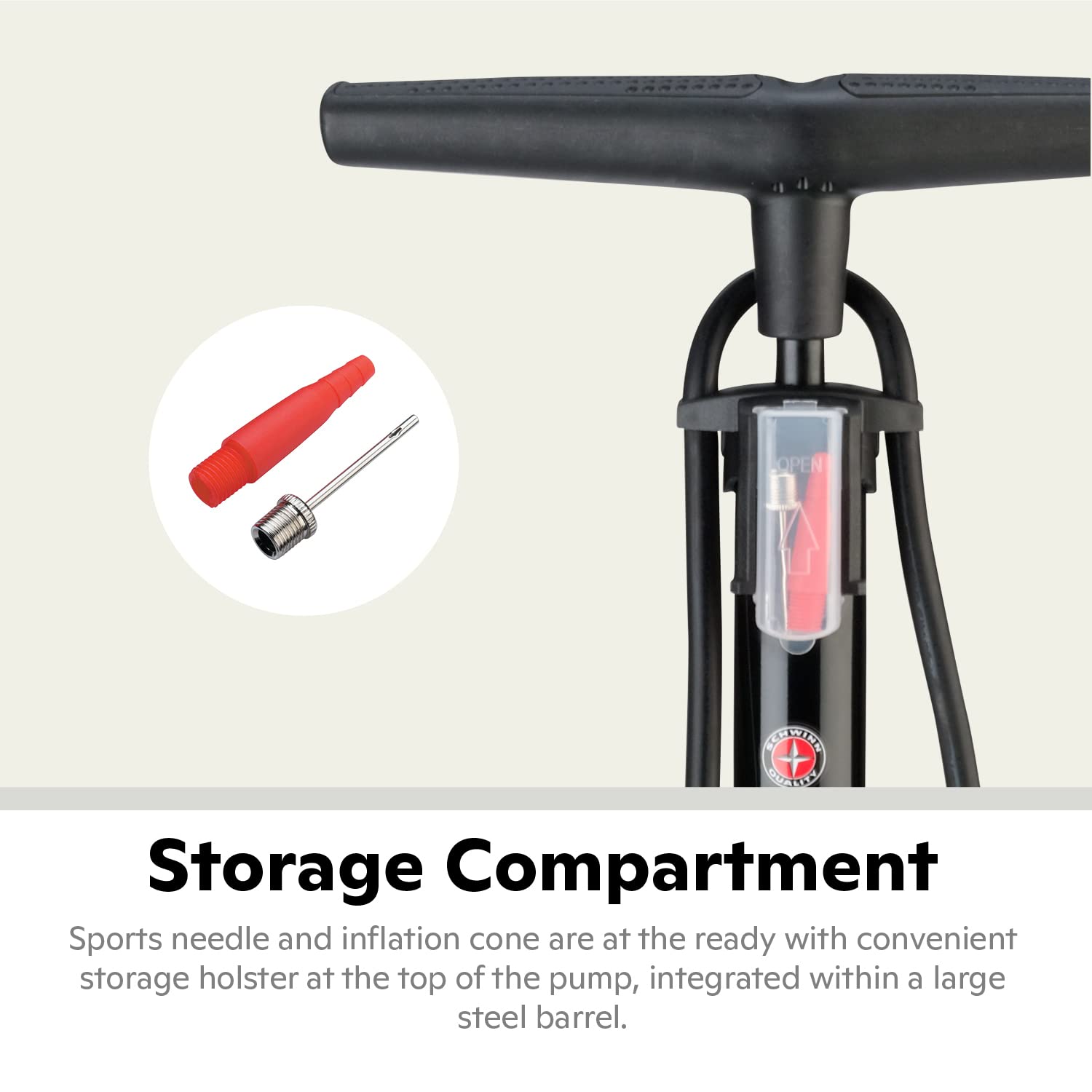 Schwinn Air Center Floor Bike Pump - 120 PSI Max, Dual Head for Schrader & Presta Valves