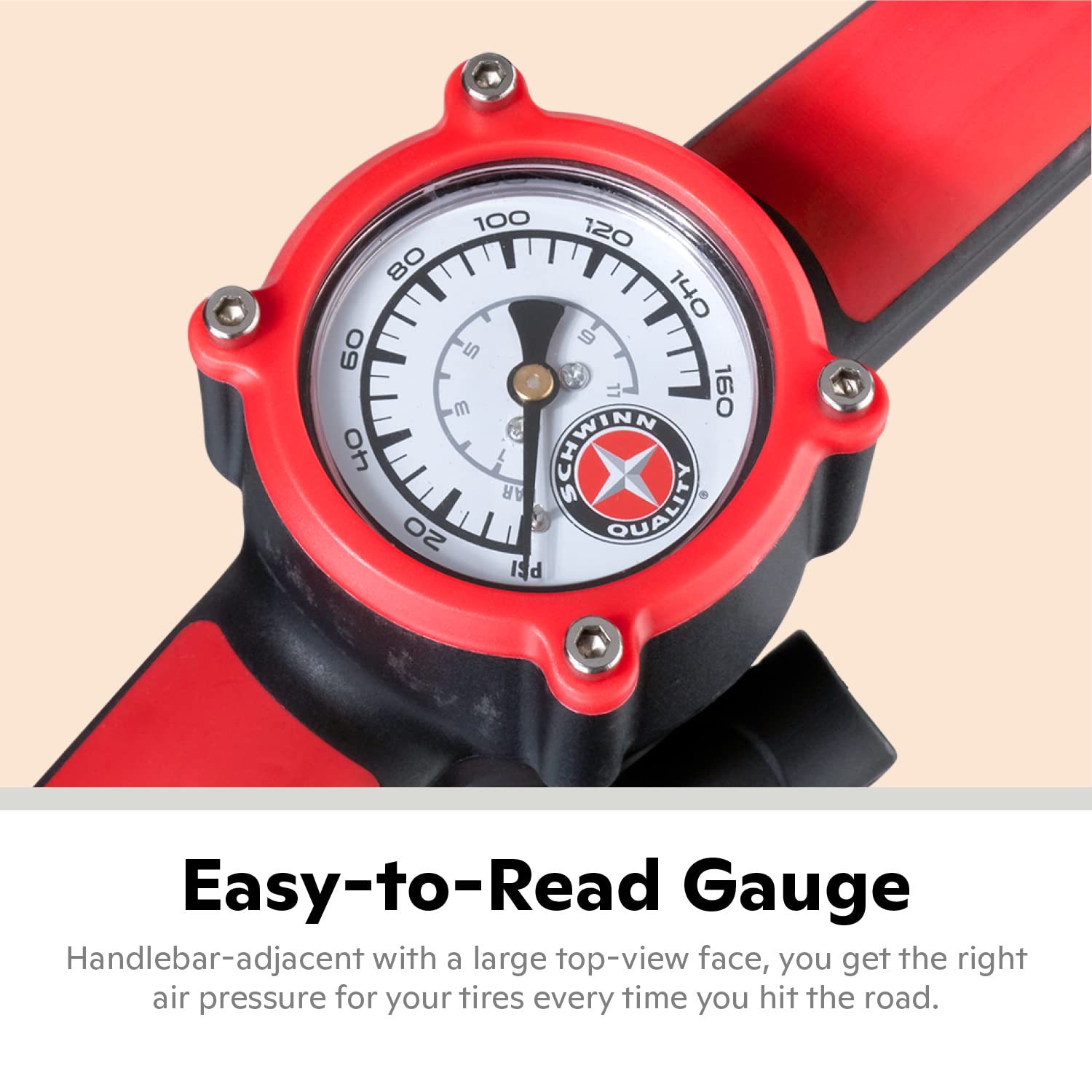 Schwinn Air Center Pro Bike Tire Floor Pump, Up To 160 Psi With Large Handle Guage, Pump Head Fits Schrader And Presta Valve Typ