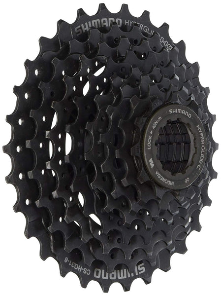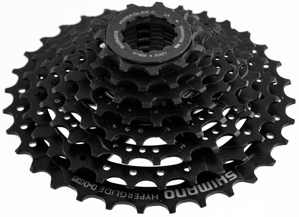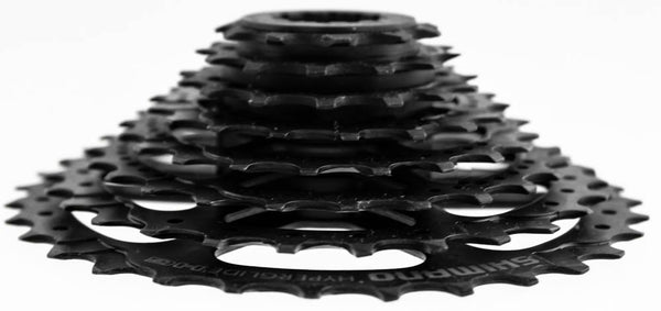 Shimano cassettes are designed with Hyperglide technology for quicker and smoother shifting with tooth profiling and zinc phosphate black finish for longer life.