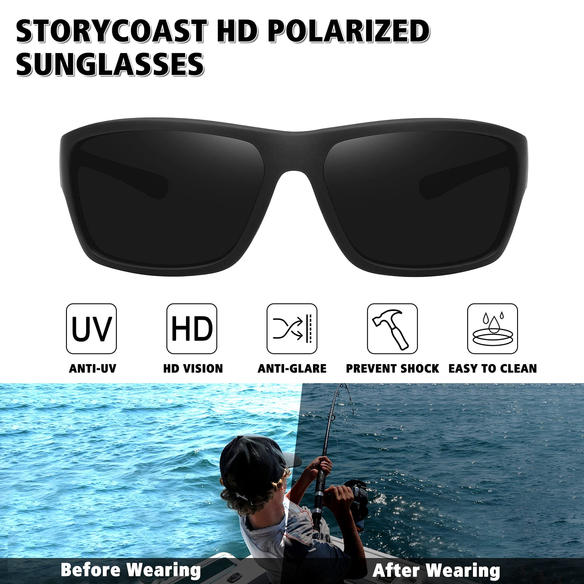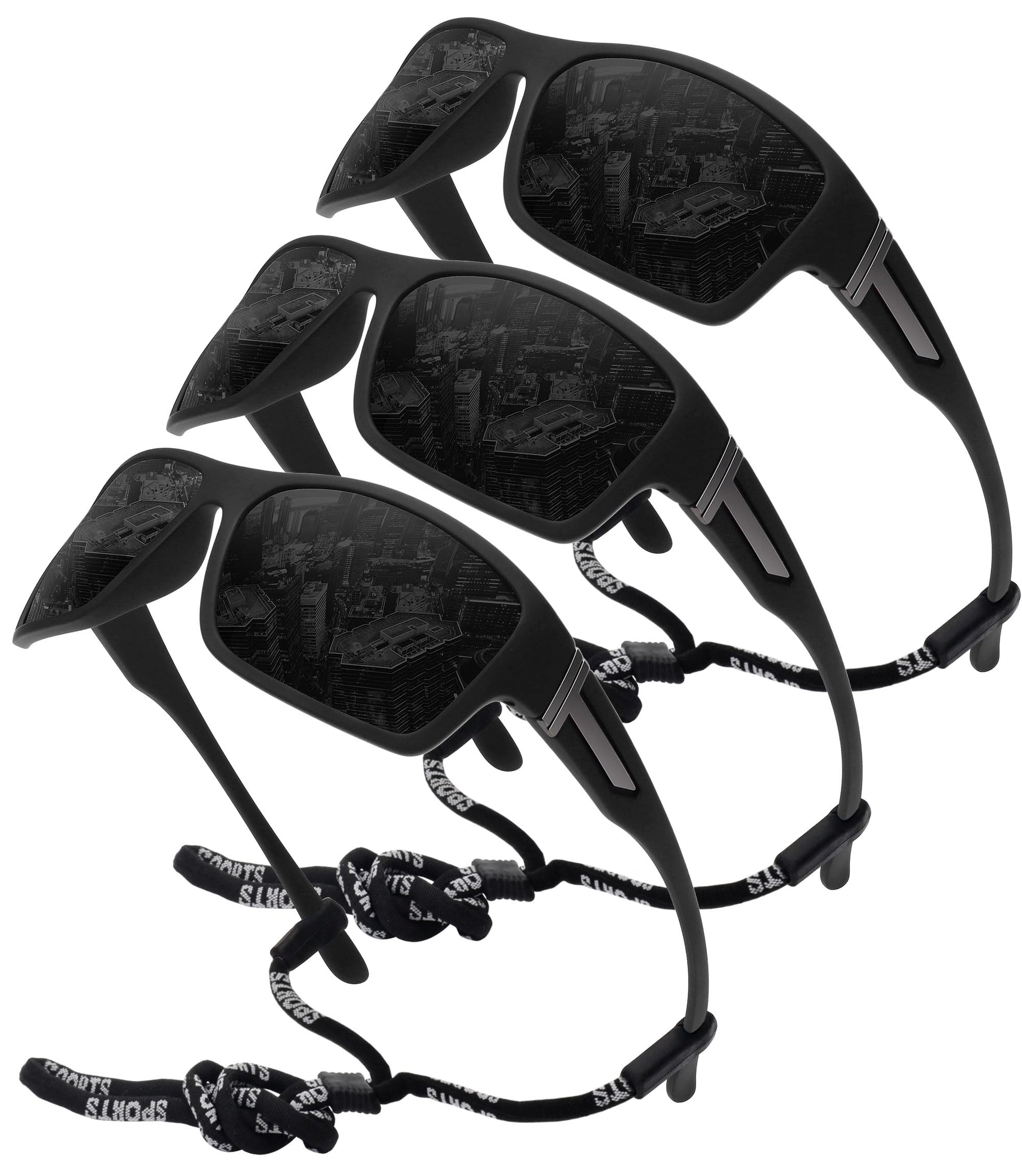 Storycoast Polarized Sports Sunglasses For Men Women Unbreakable Frame Cycling Fishing Driving 3Pack Black+Black+Black