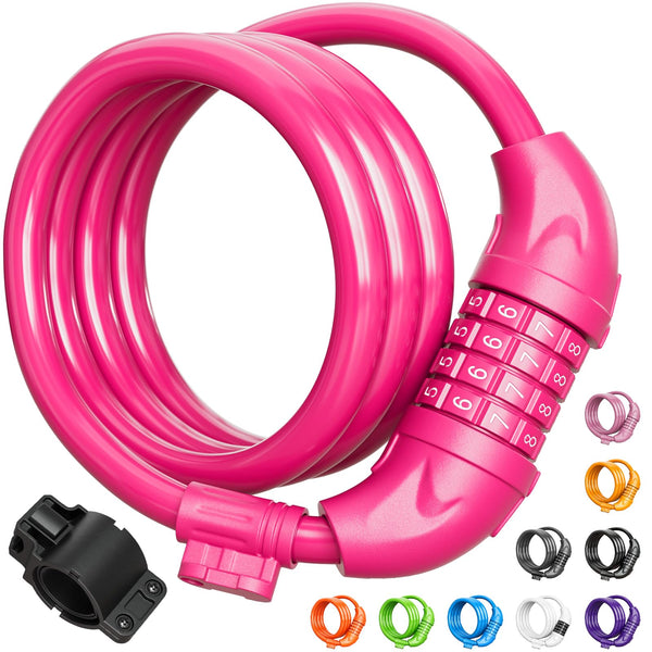 Titanker Bike Lock, 4 Feet Security Resettable Combination Coiling Bike Cable Locks With Mounting Bracket, 1/2 Inch Diameter (Pi