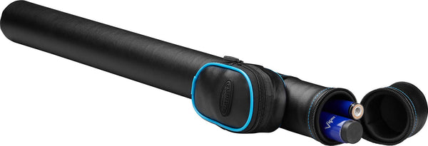 Casemaster Q-Vault Supreme Billiard/Pool Cue Hard Case, Holds 1 Complete 2-Piece Cue (1 Butt/1 Shaft), Black With Blue Trim