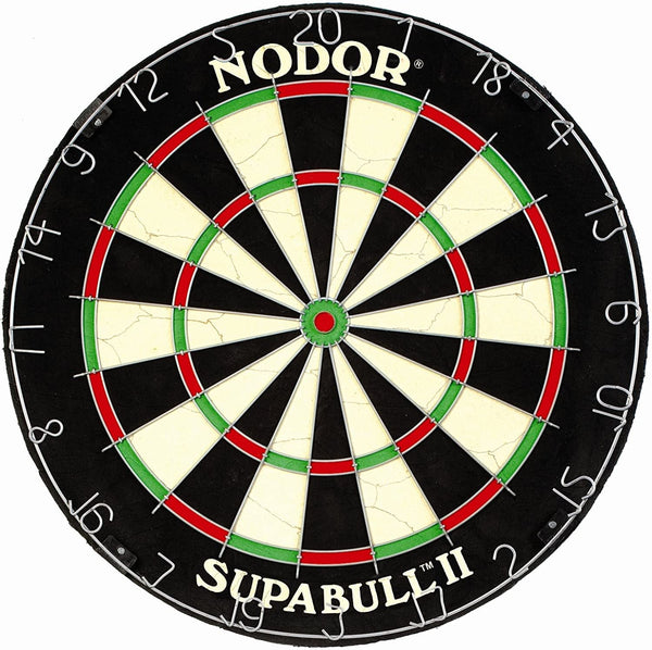 - Q: What are the dimensions of the Nodor Supabull II Bristle Dartboard? A: The Nodor Supabull II Bristle Dartboard meets official tournament specifications with a standard size of 18 inches in diameter.
