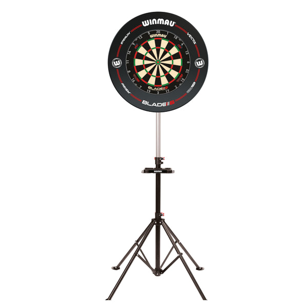 - Q: How stable is the WINMAU Xtreme Dartboard Stand during play? A: This dartboard stand features robust construction and a 4-leg stability-enhancing base, providing unmatched stability and minimizing vibrations, making it ideal for intense competition.