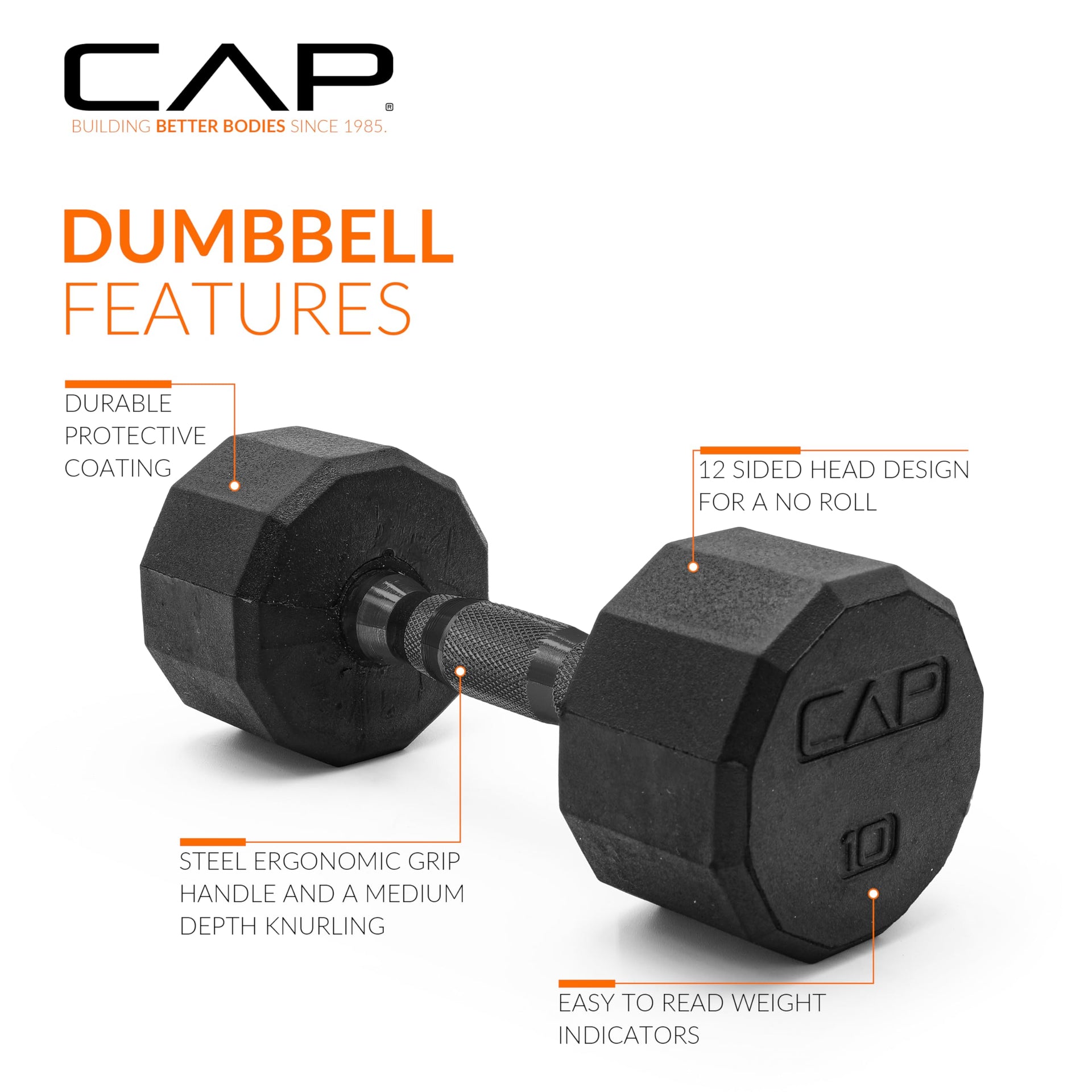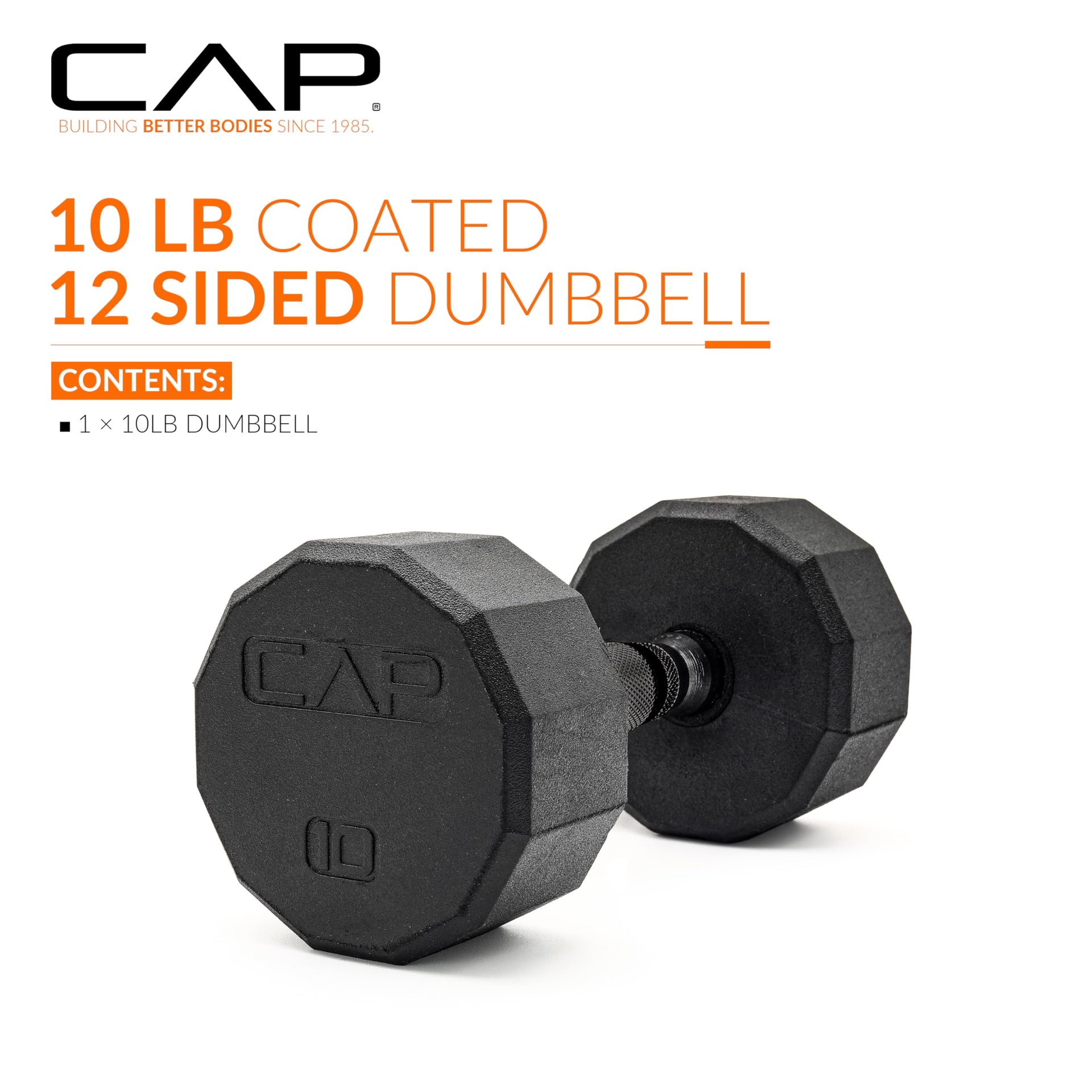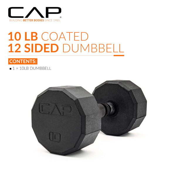 Cap Barbell 12-Sided Coated Dumbbell With Black Handle, Single, 10 Lb