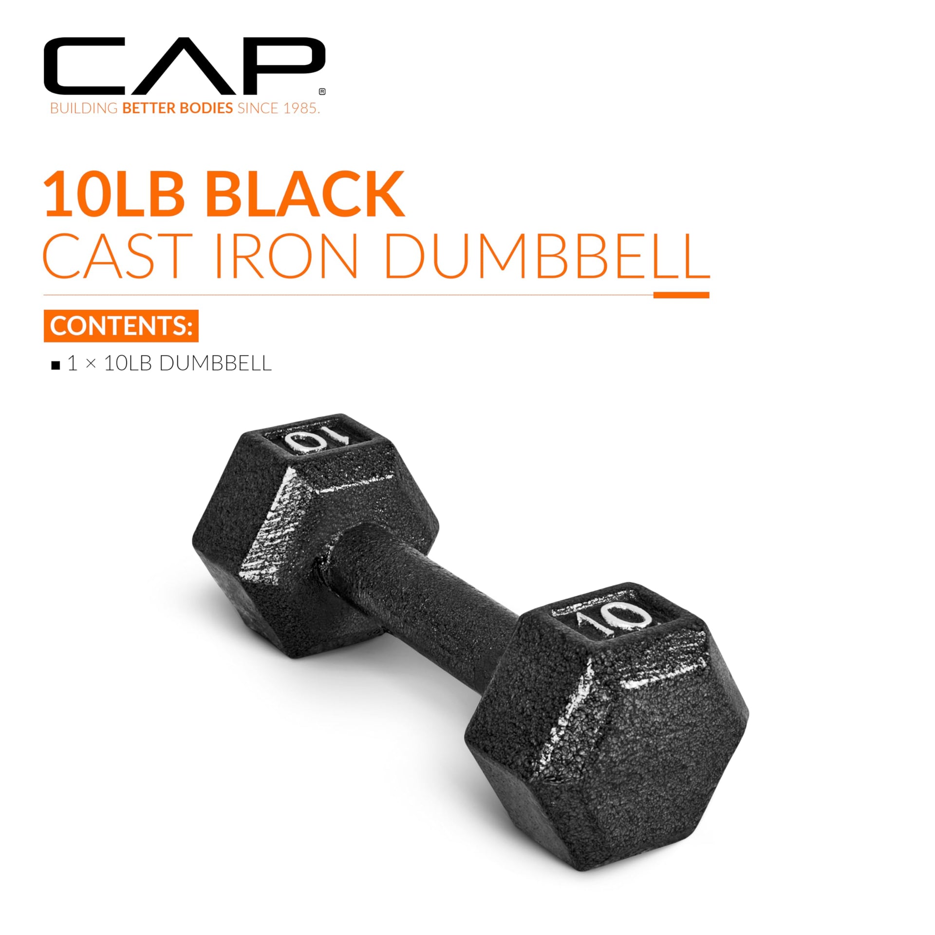 Cap Barbell Cast Iron Hex Dumbbell, Black, Single, 10 Lb