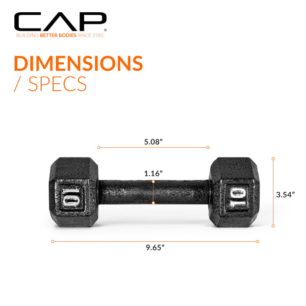 Cap Barbell Cast Iron Hex Dumbbell, Black, Single, 20 Lb